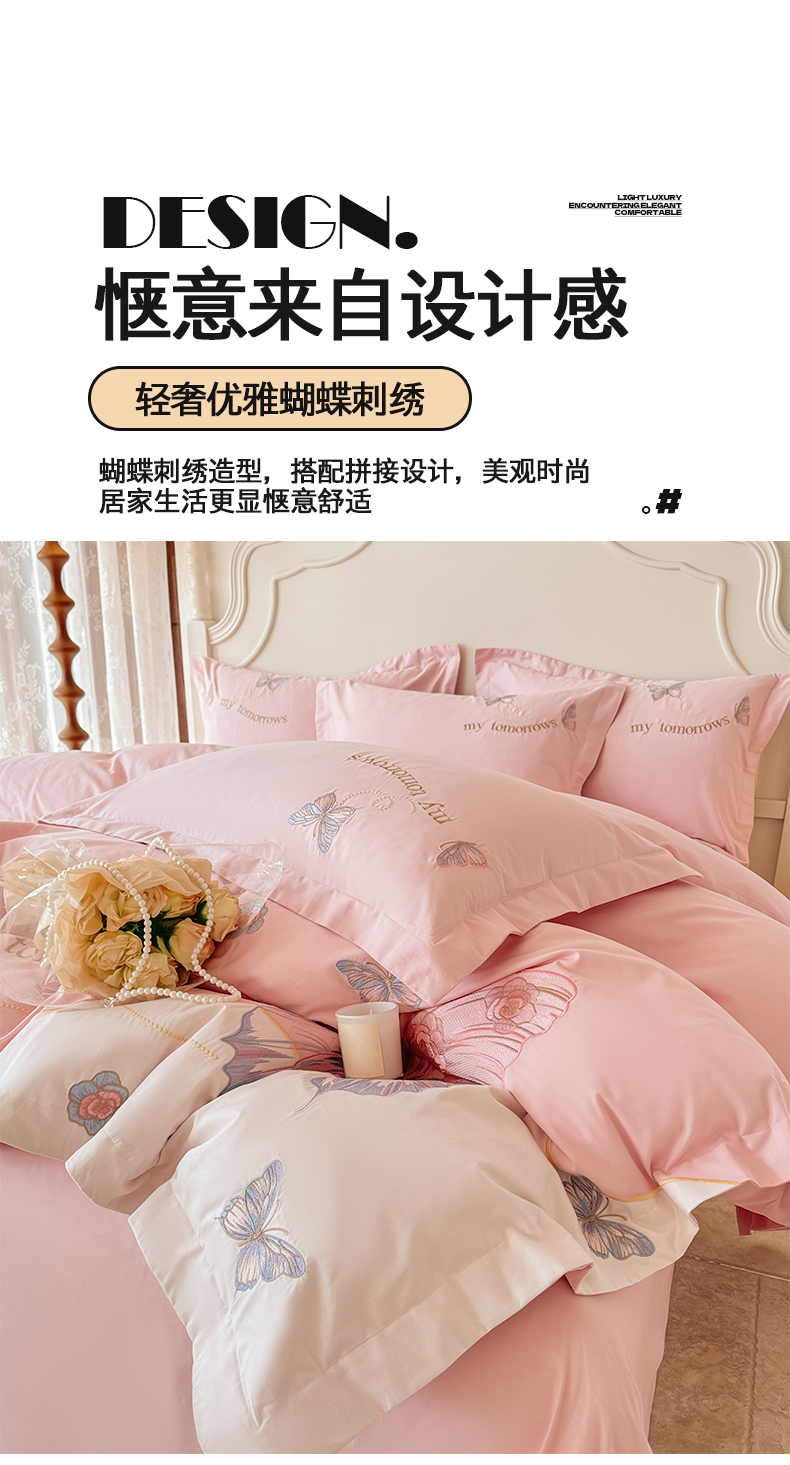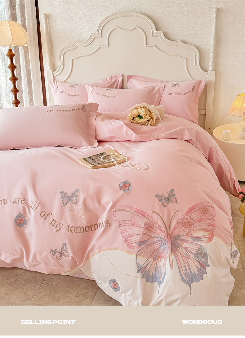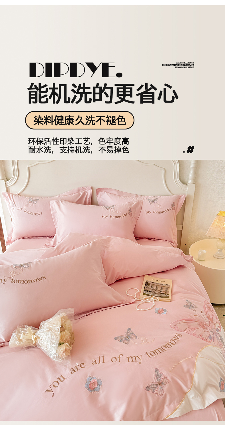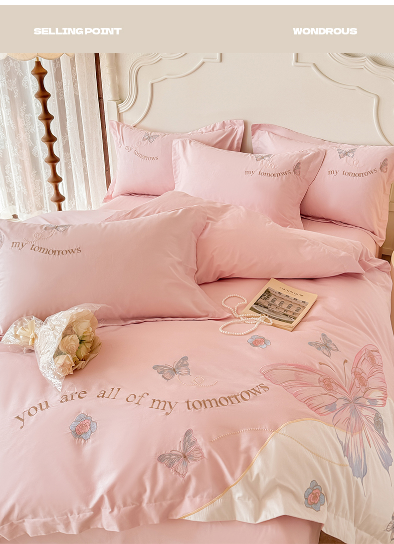 典曼家纺 2025新款A类刺绣四件套-梦幻蝶影 梦幻蝶影-粉