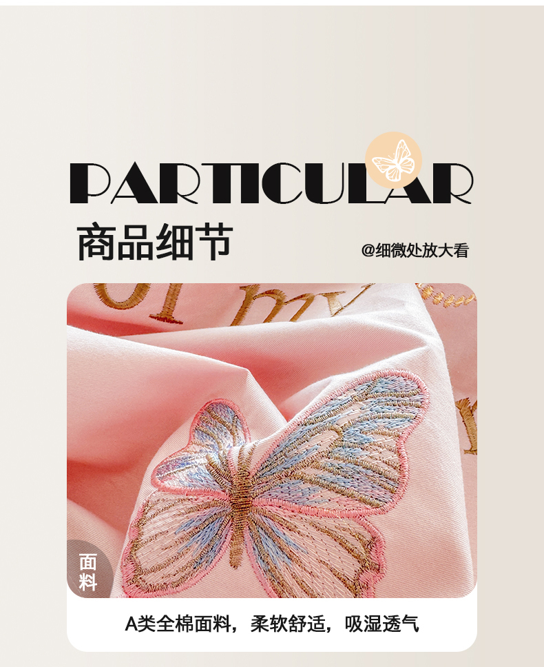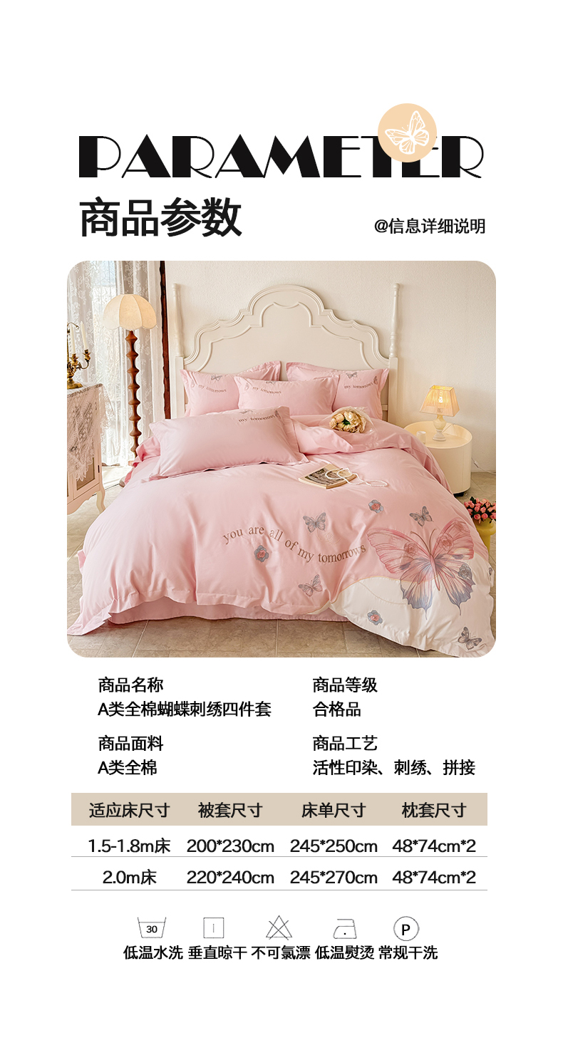 商品名称:典曼家纺 2025新款A类刺绣四件套-梦幻蝶影 梦幻蝶影-粉