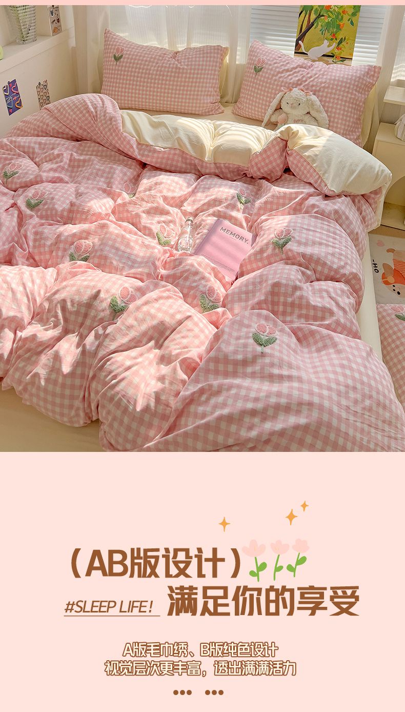 (总)灰鲸2025新款ins韩系田园风郁金香毛巾绣四件套