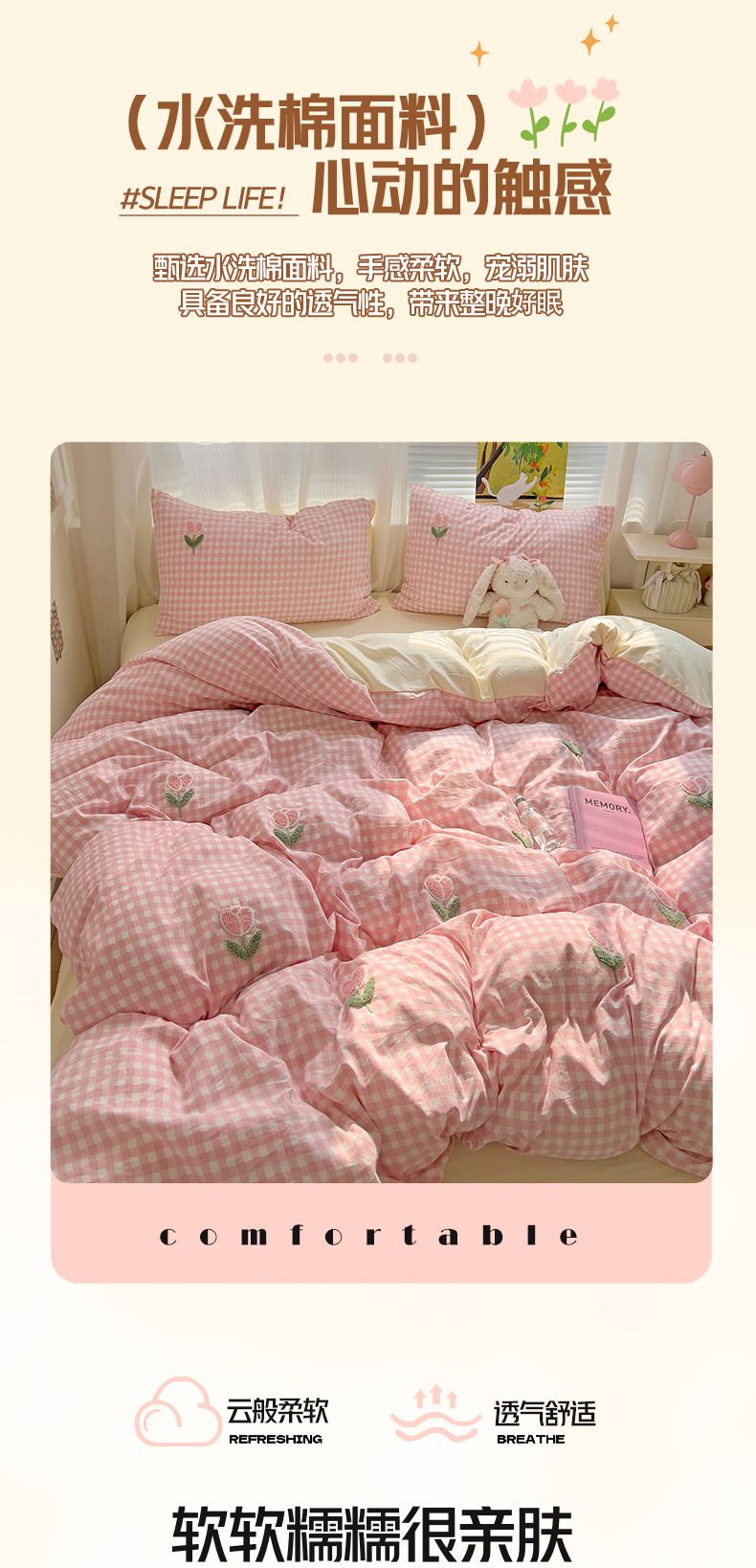 商品名称:(总)灰鲸2025新款ins韩系田园风郁金香毛巾绣四件套