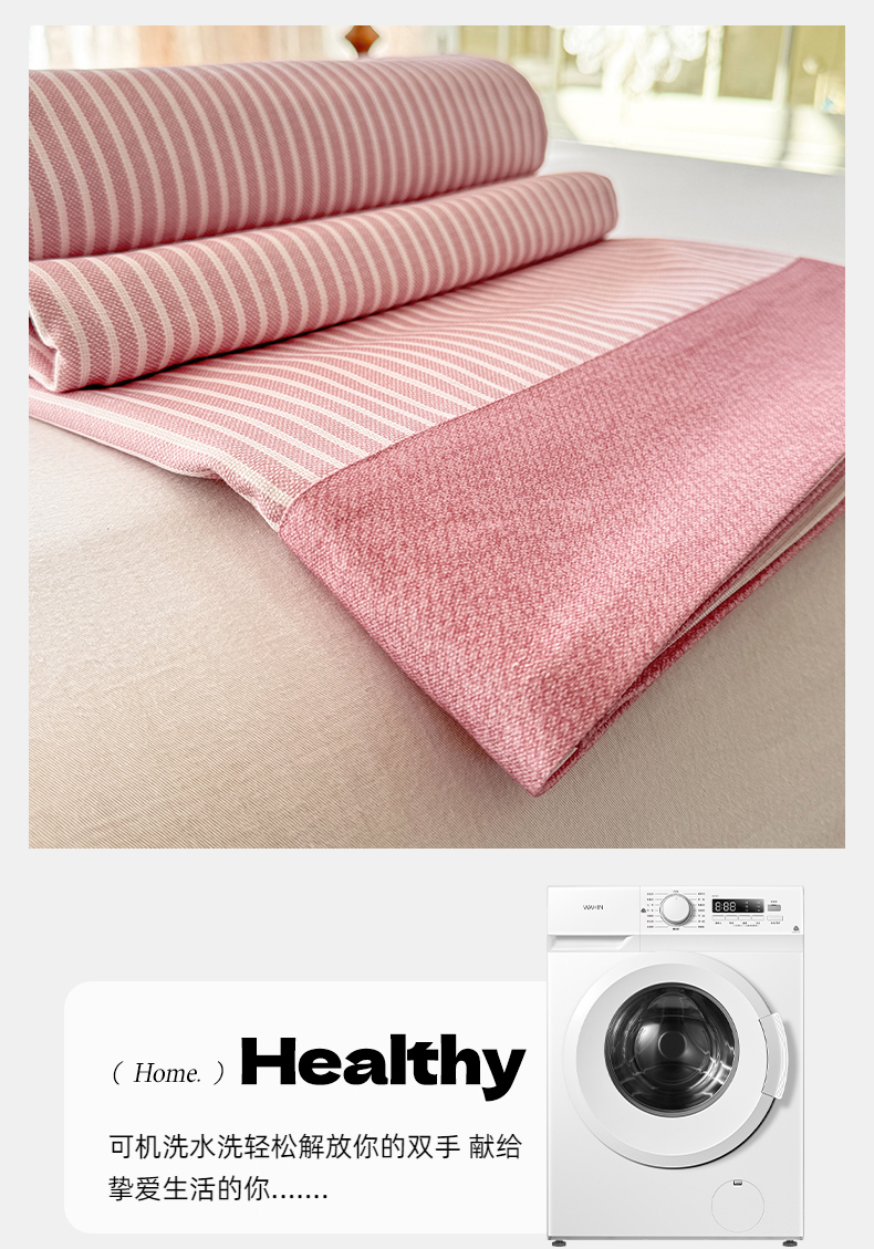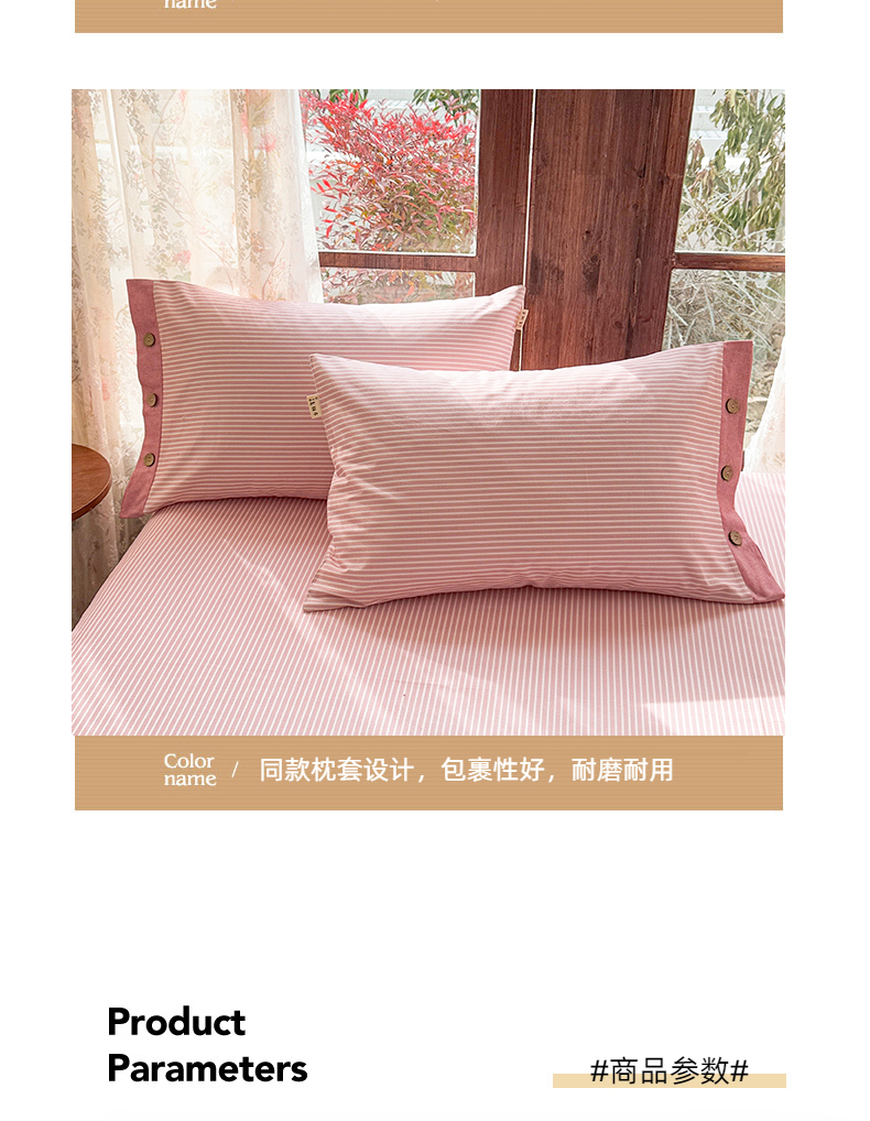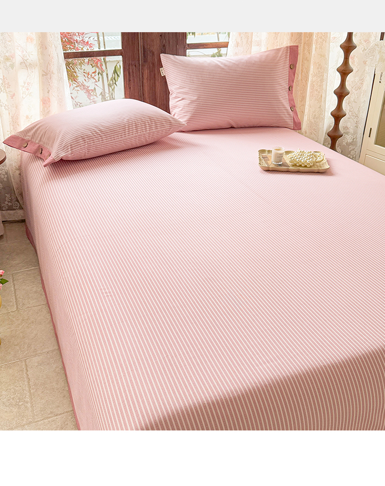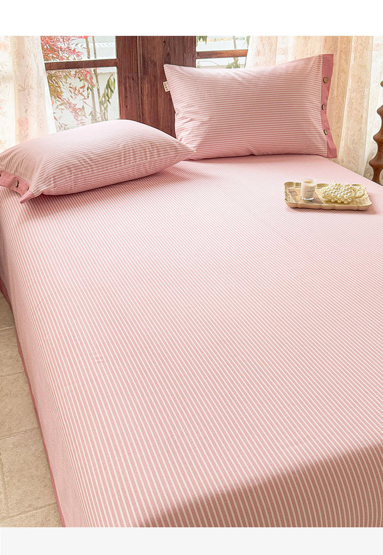 • 91家纺网 家纺一手货源 找家纺 简宜家居 2025新款宽边纯棉全棉老粗布床单 条纹-粉桃宽边