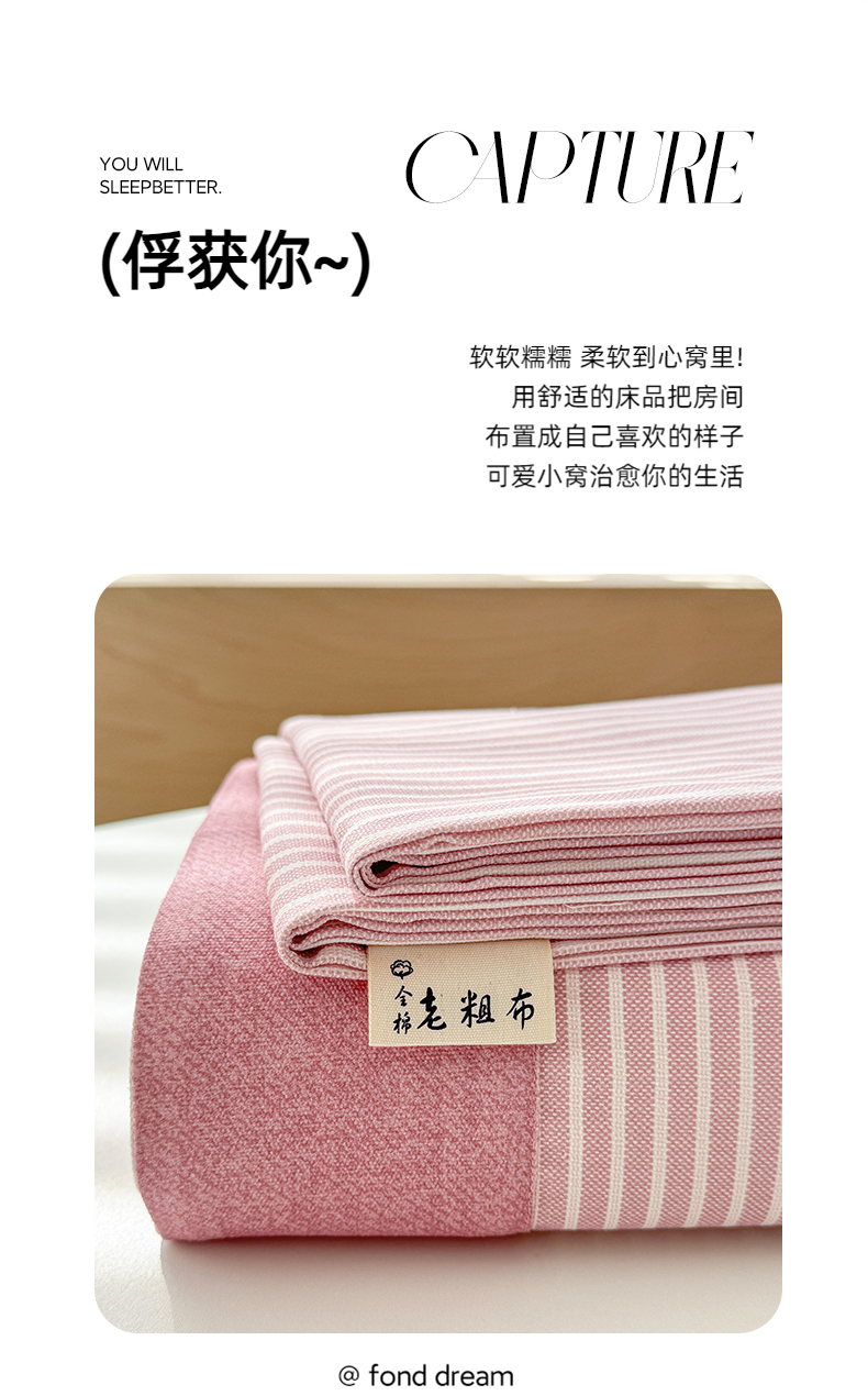 当前位置: 91家纺网 > 商品网购 > 床上用品 > 床单 > 简宜家居 2025新款宽边纯棉全棉老粗布床单 条纹-粉桃宽边