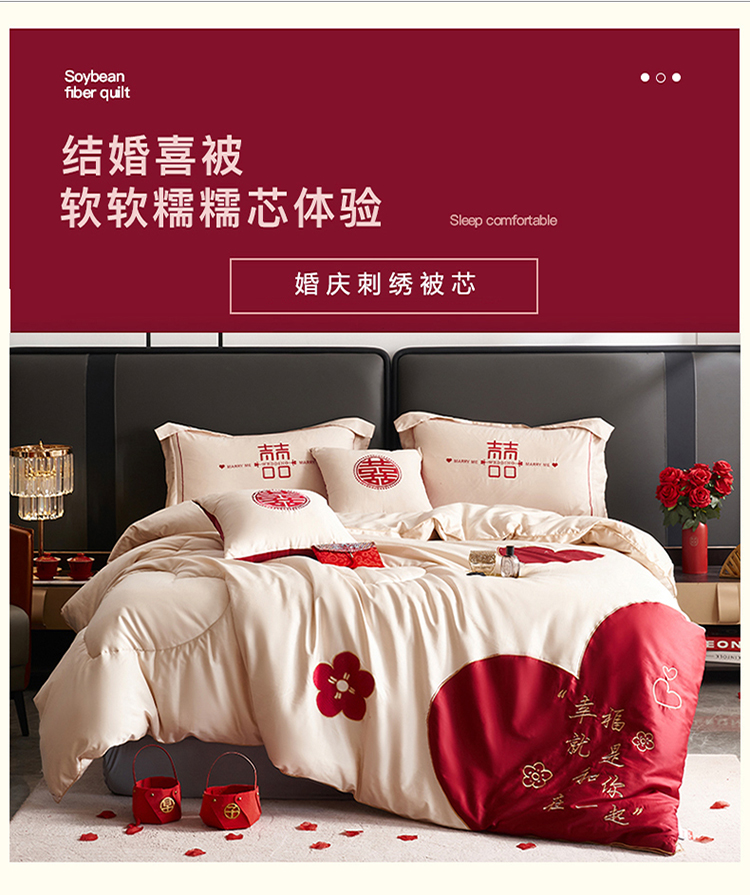 商品名称:甜咪咪婚庆 2025 新款居家婚庆刺绣结婚 春秋冬婚庆喜被 幸福