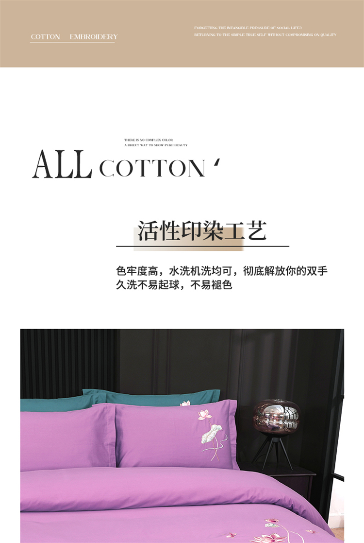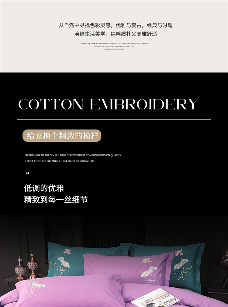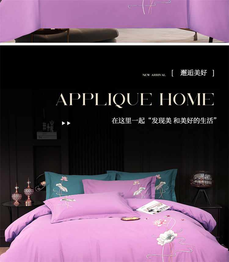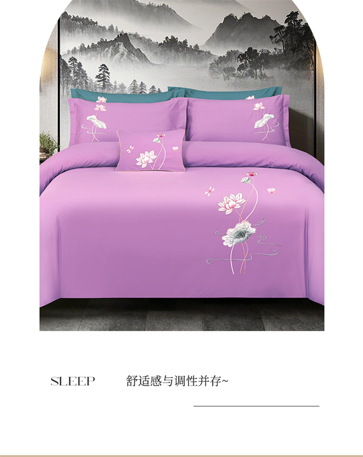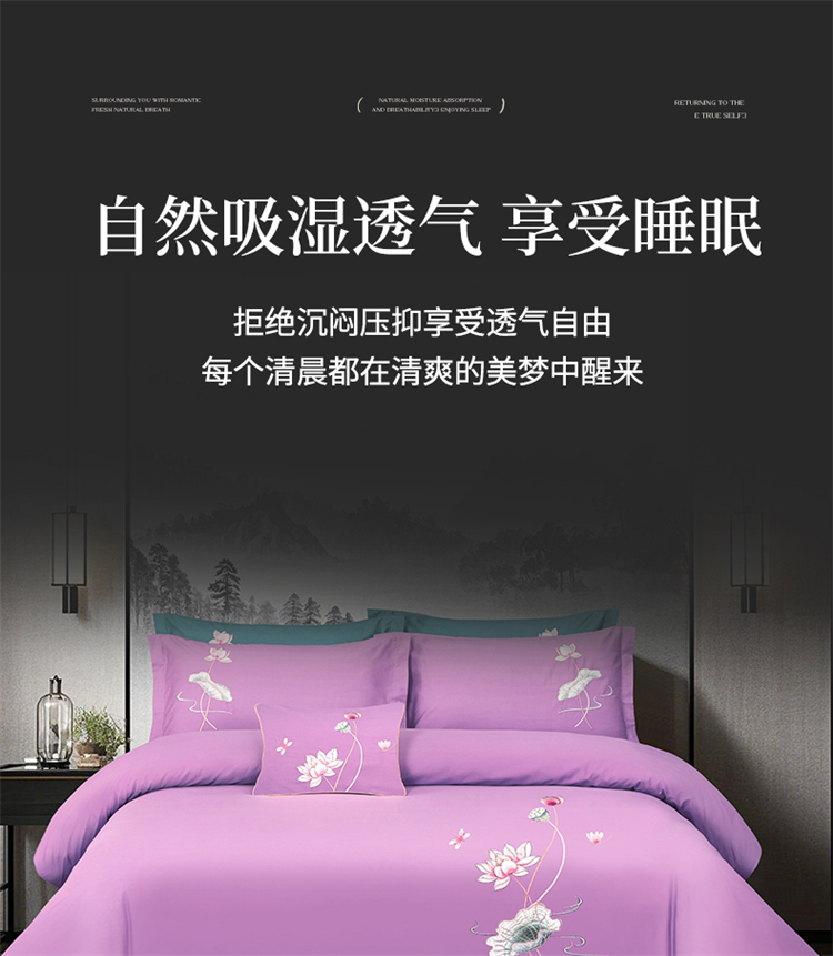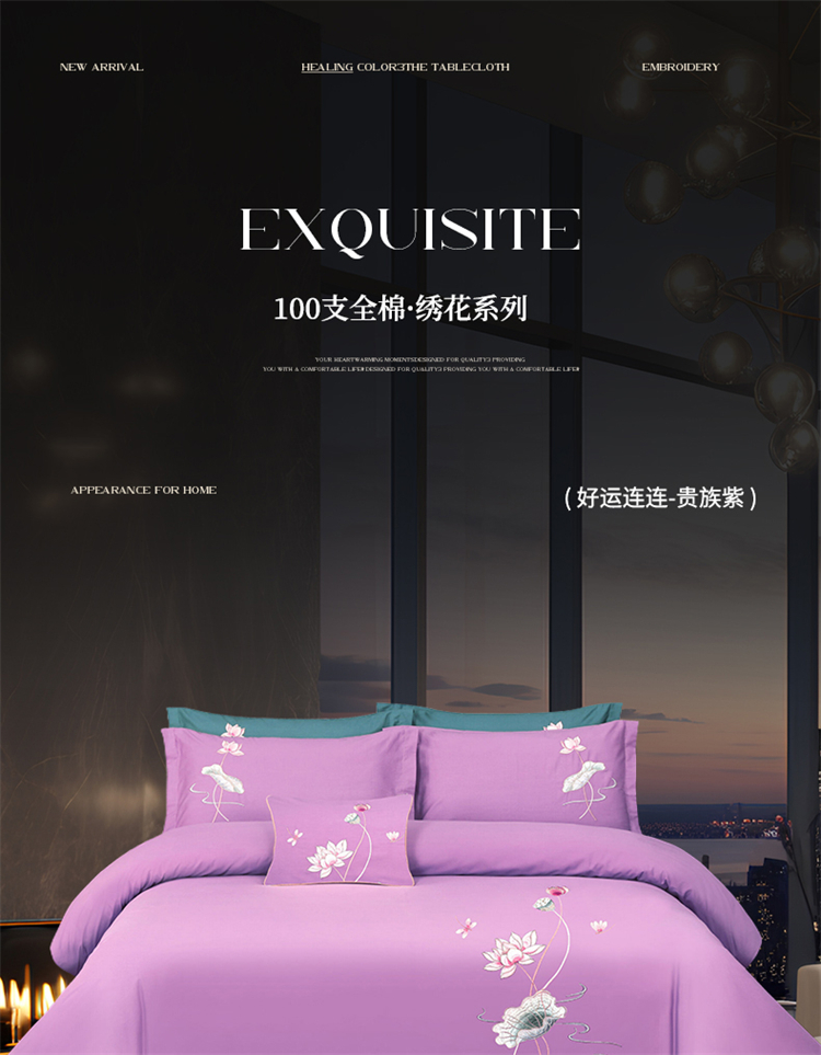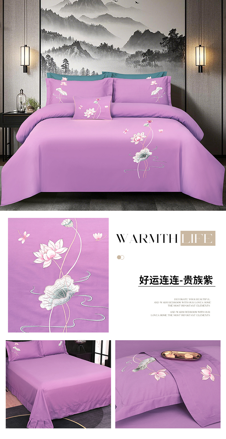 商品名称:浩情国际婚庆供货中心 2026新款100支全棉高端刺绣中式风四件套--好运连连系列 好运连连-贵族紫