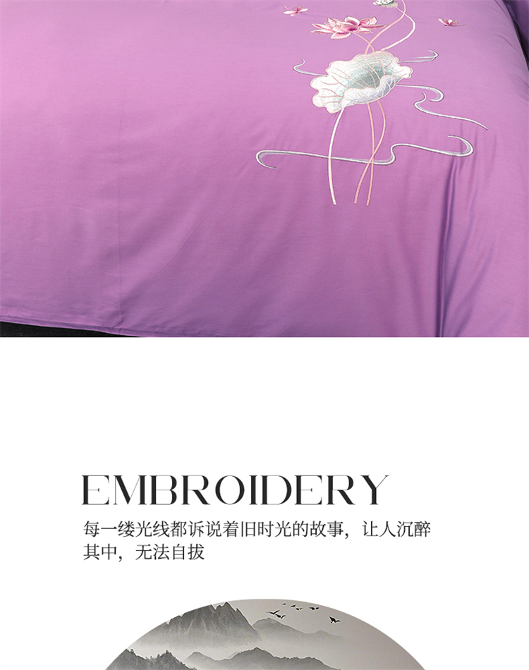 浩情国际婚庆供货中心 2026新款100支全棉高端刺绣中式风四件套--好运连连系列 好运连连-贵族紫