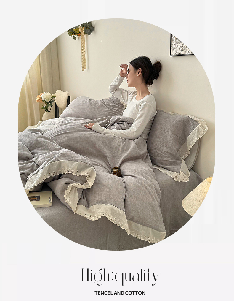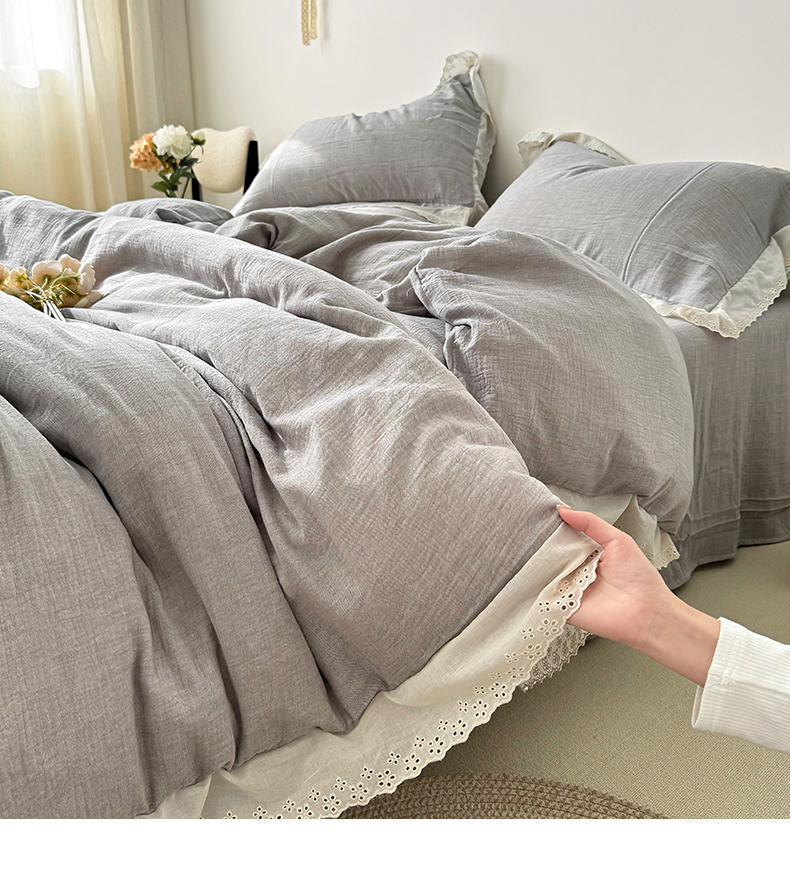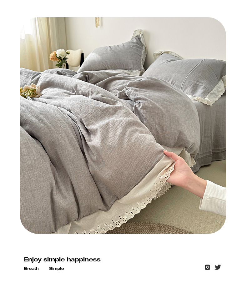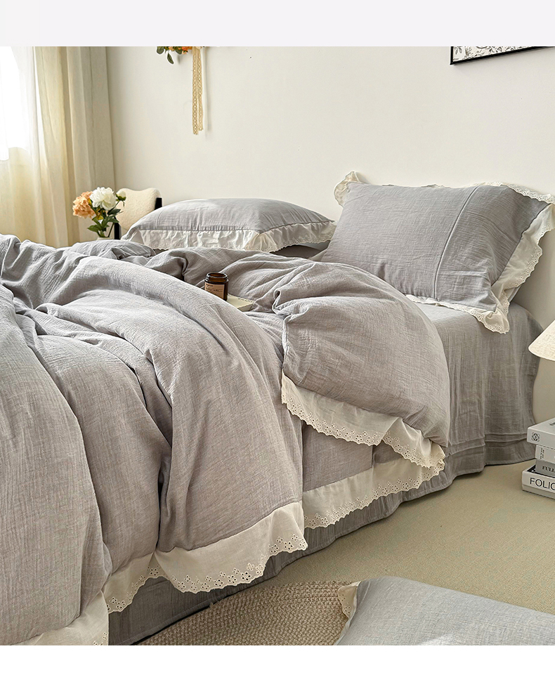 (总)九沐良品 2025新款全棉双层皱皱沙纯色四件套--安娜