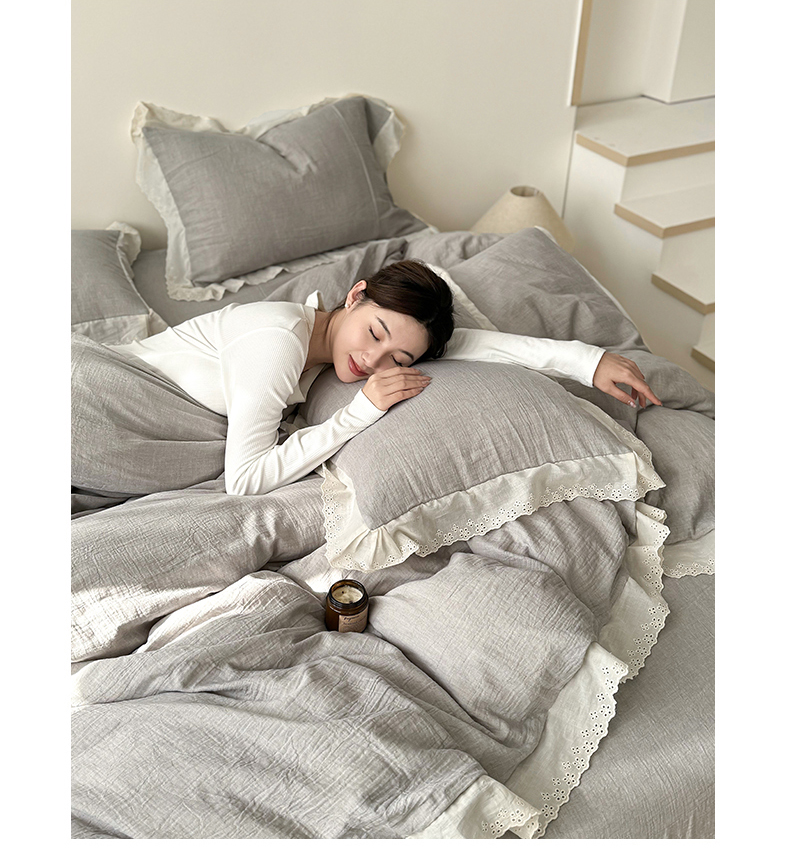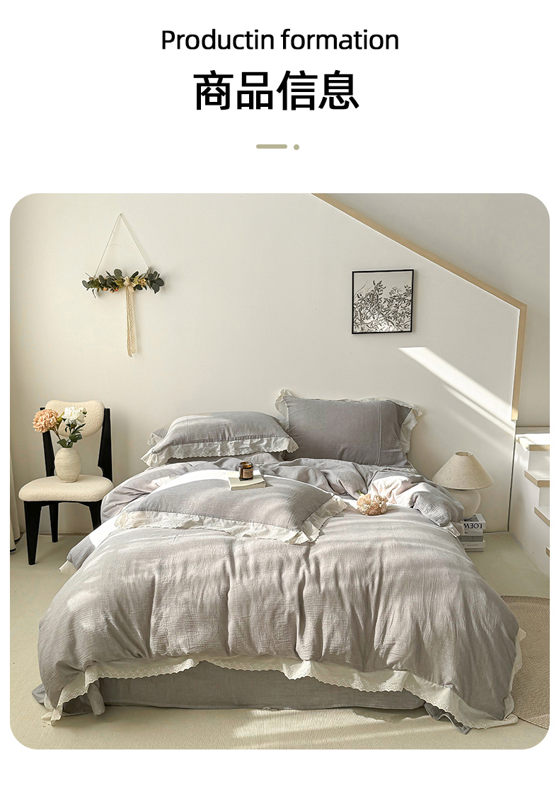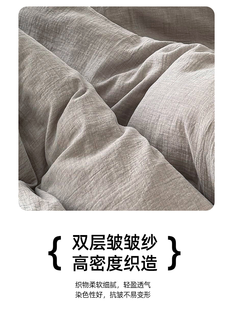 商品名称:(总)九沐良品 2025新款全棉双层皱皱沙纯色四件套--安娜