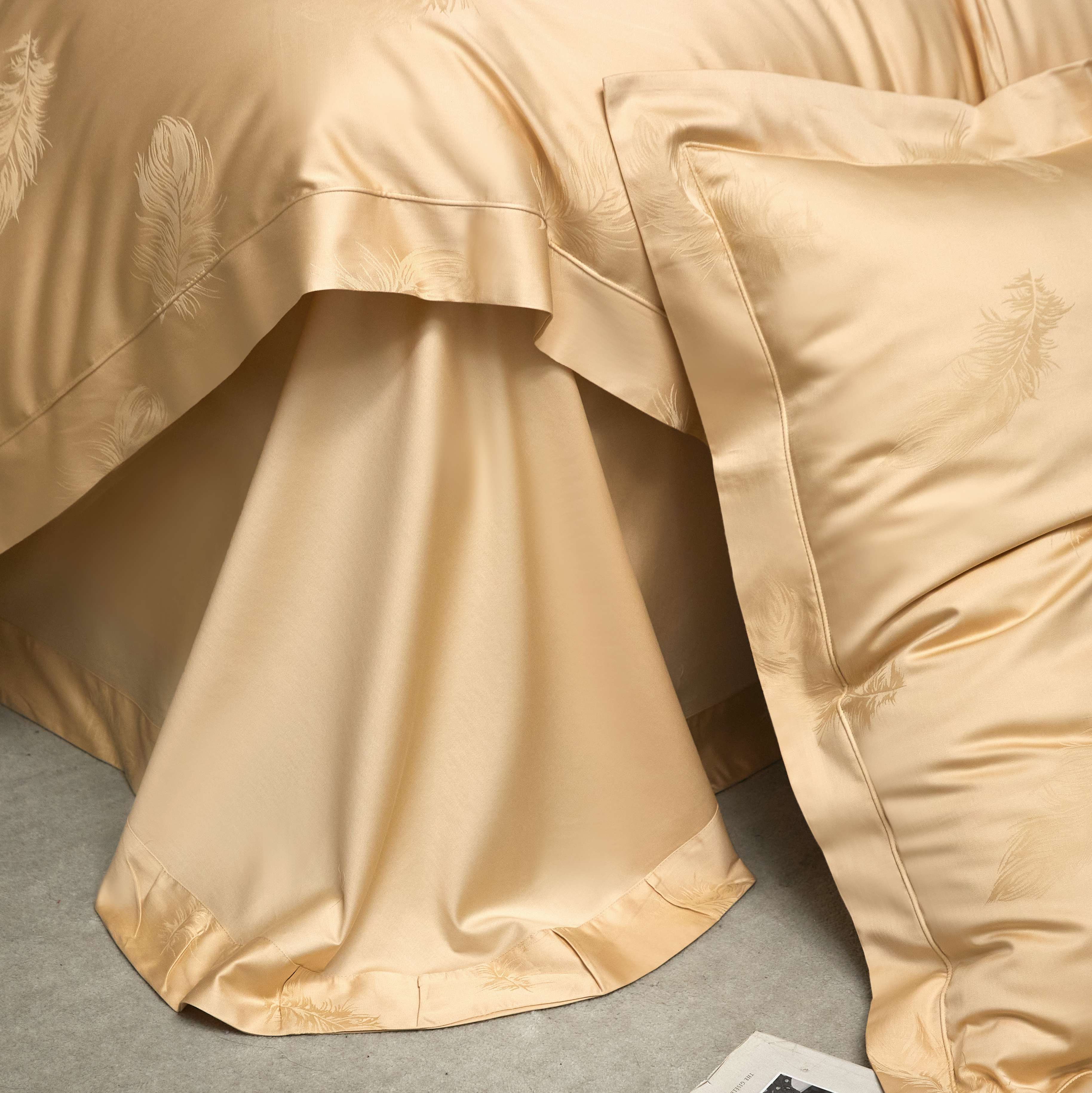 榻尚家居 2025春夏新款长绒棉全棉纯棉贡缎提花手工立体埋绳工艺四件套 飘羽(香槟金)