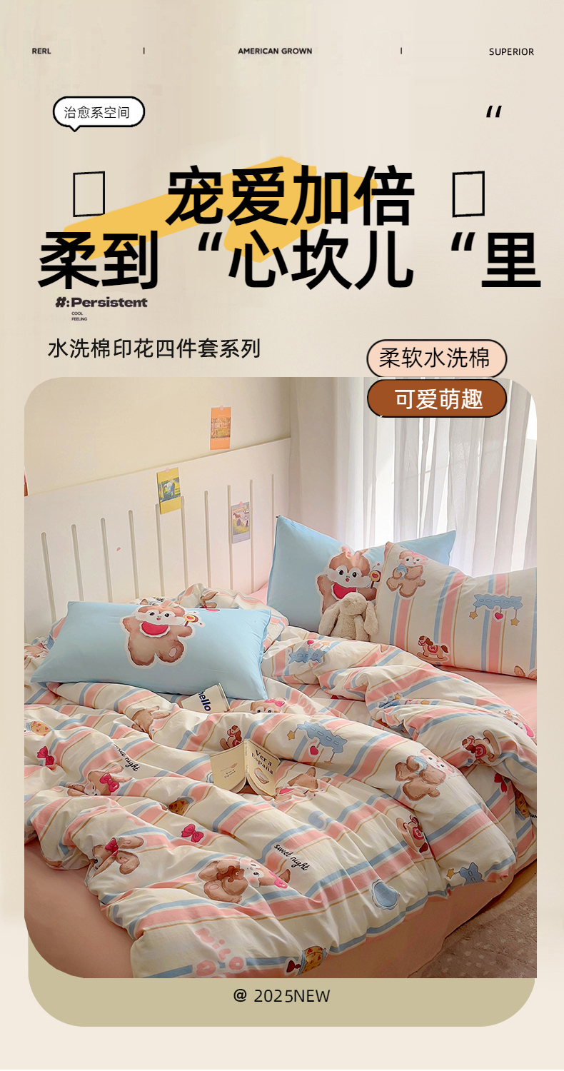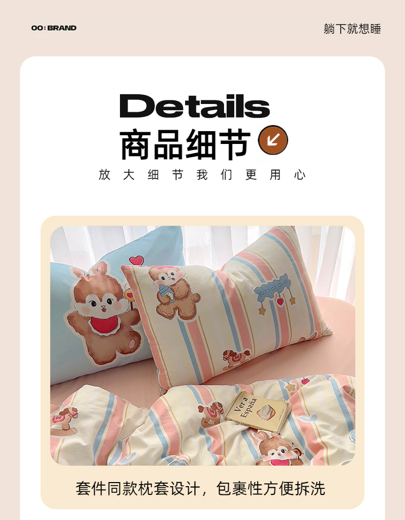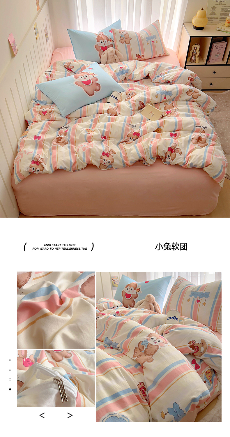 当前位置: 91家纺网 > 商品网购 > 床品套件 > 四件套 > 水洗棉四件套 > 花漾家居 2025新款水洗棉大版小清新洛丽塔四件套 小兔软团