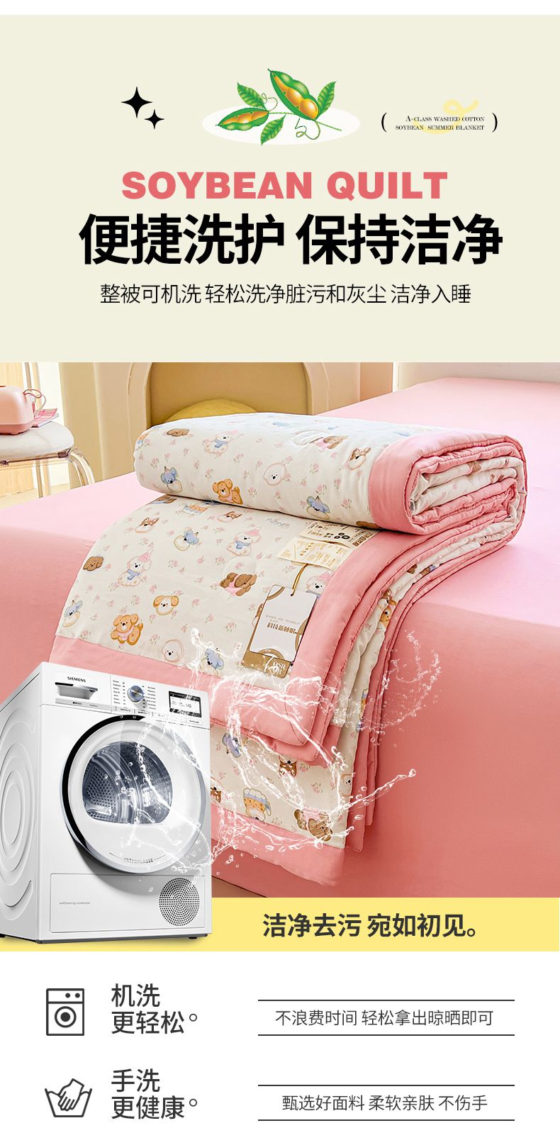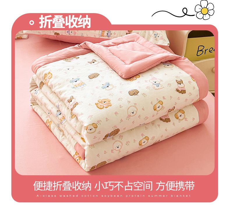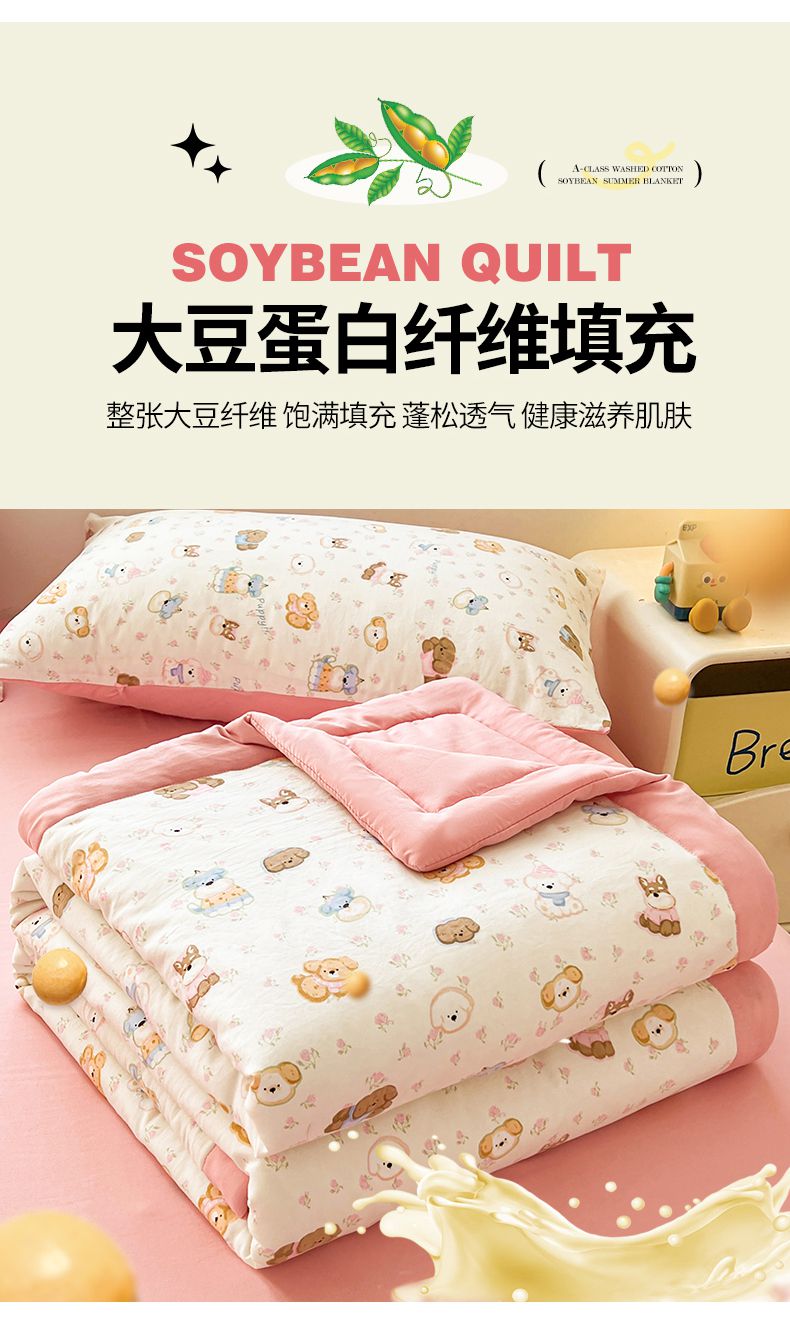商品名称:秋泽家纺 2025春夏新款水洗棉双层纱大豆纤维夏被夏凉被空调被 萌宠乐园
