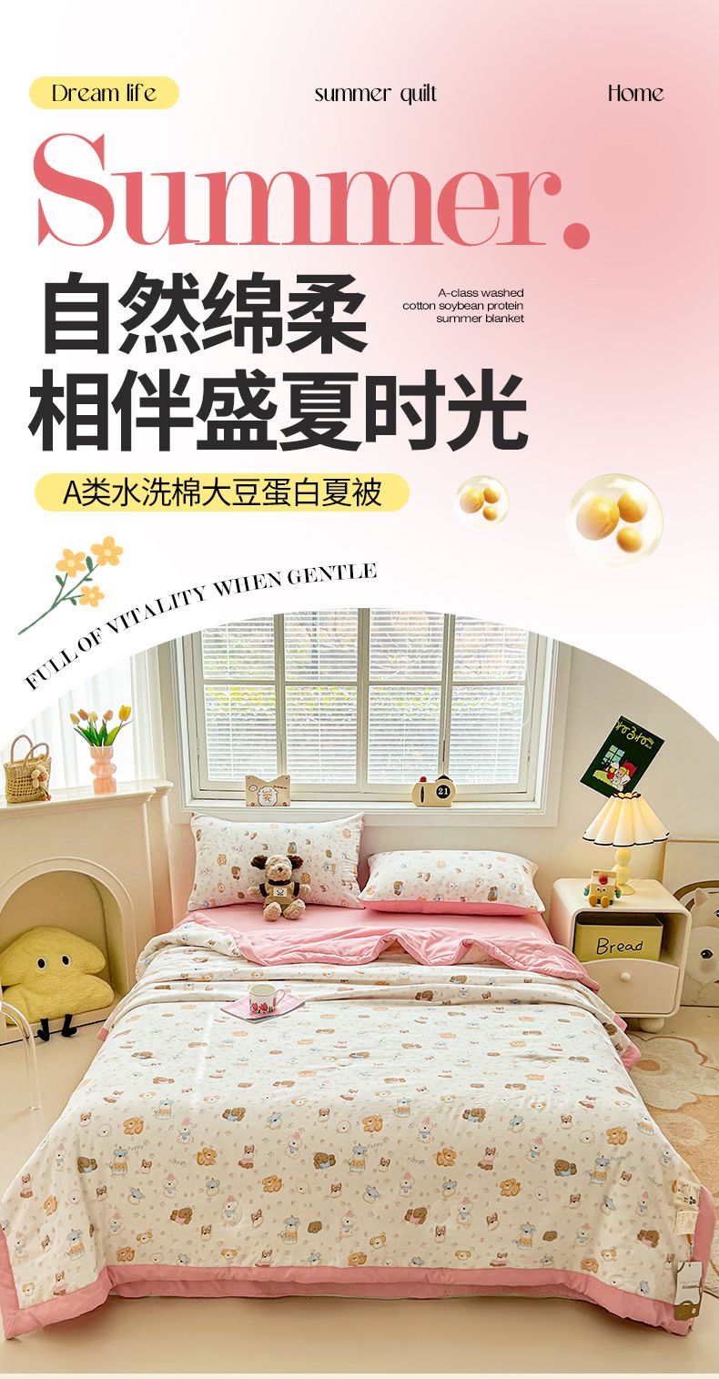 (总)秋泽家纺 2025春夏新款水洗棉双层纱大豆纤维夏被夏凉被空调被,缤纷果园,爱心粉兔,简约格韵,可爱卡皮巴拉,快乐汪汪,腊肠萌狗,旅行恐龙,萌宠乐园,萌兔乐园,蘑菇乐园,汽车派对,时尚空间,KT猫猫
