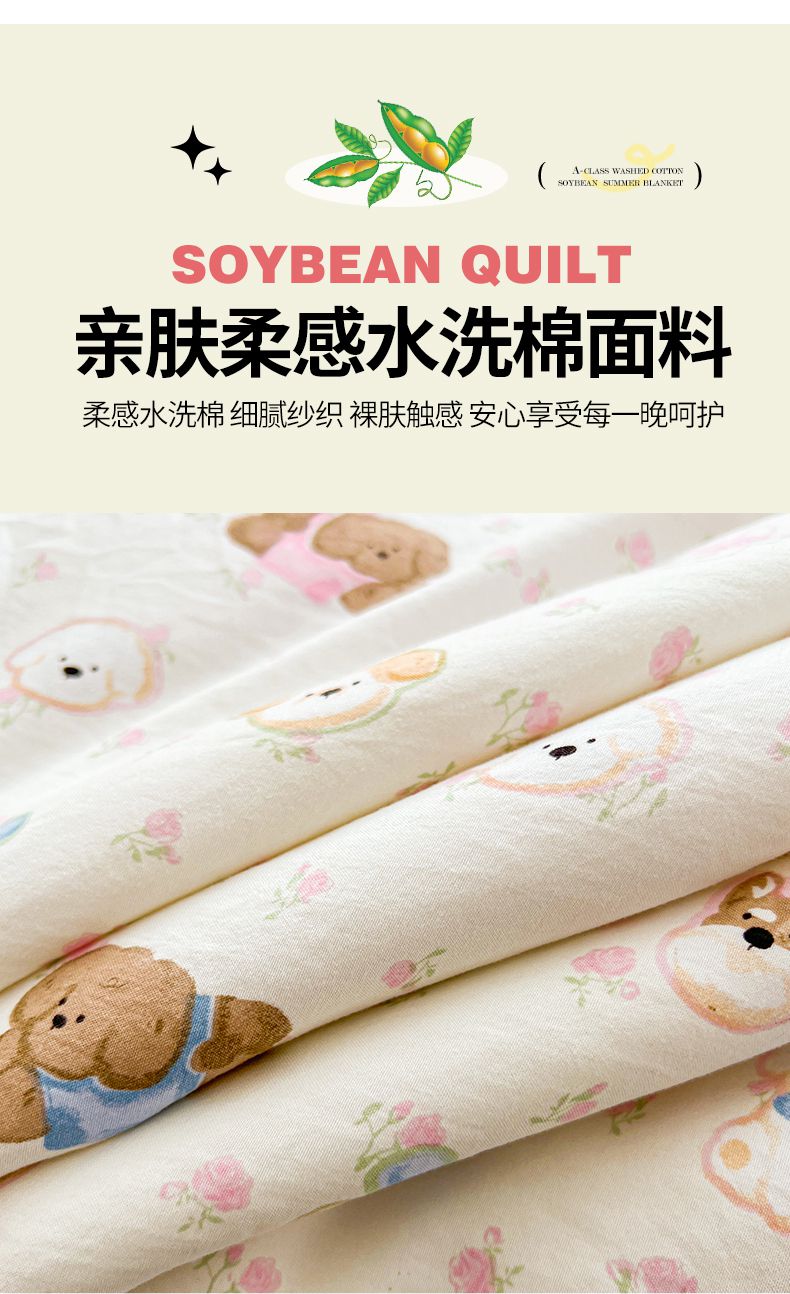 秋泽家纺 2025春夏新款水洗棉双层纱大豆纤维夏被夏凉被空调被 萌宠乐园