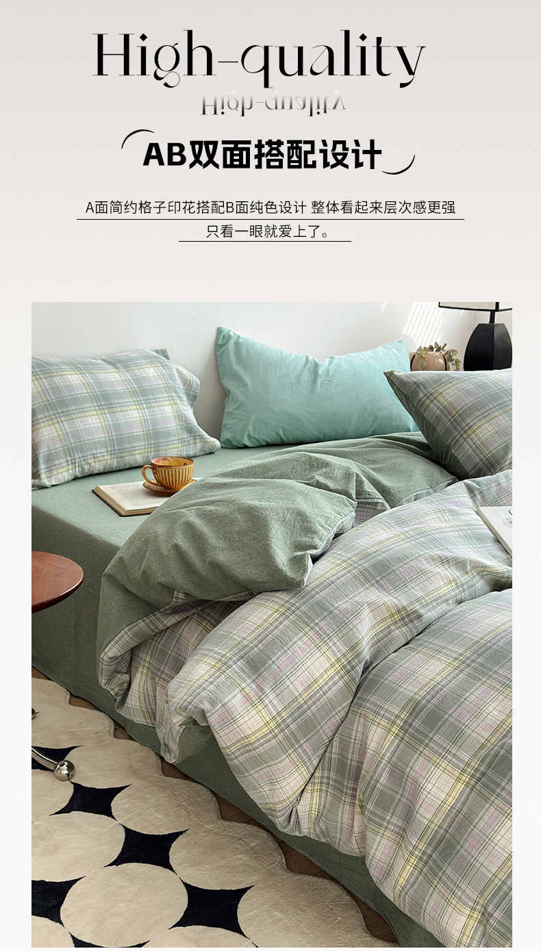 当前位置: 91家纺网 > 商品网购 > 床品套件 > 四件套 > 色织四件套 > 水洗的故事2025新款A类AB版全棉色织水洗棉四件套 拾光