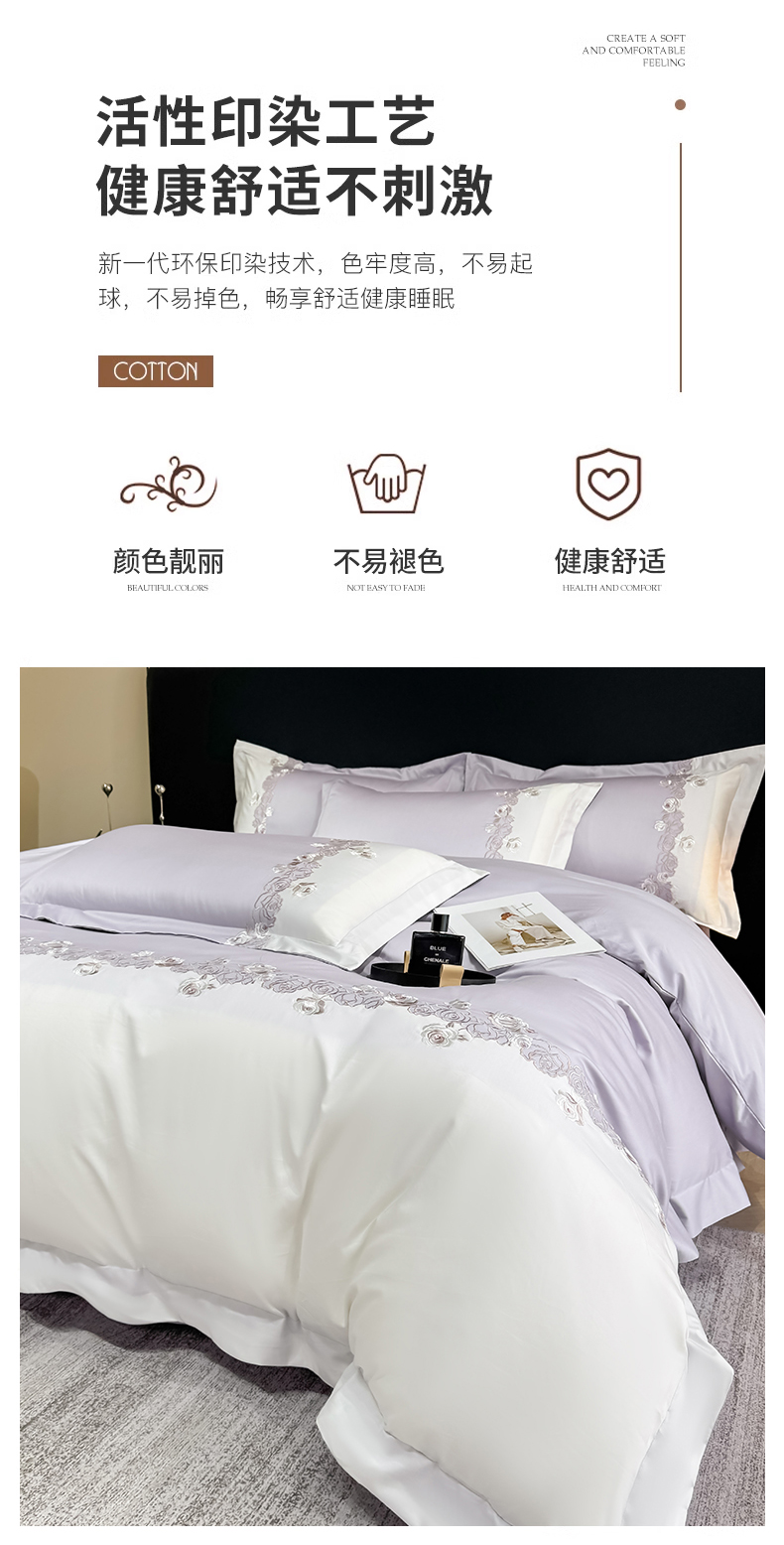 商品名称:(总)KA家纺 2025春夏A类纯棉全棉贡缎绣花长绒棉四件套 初见系列