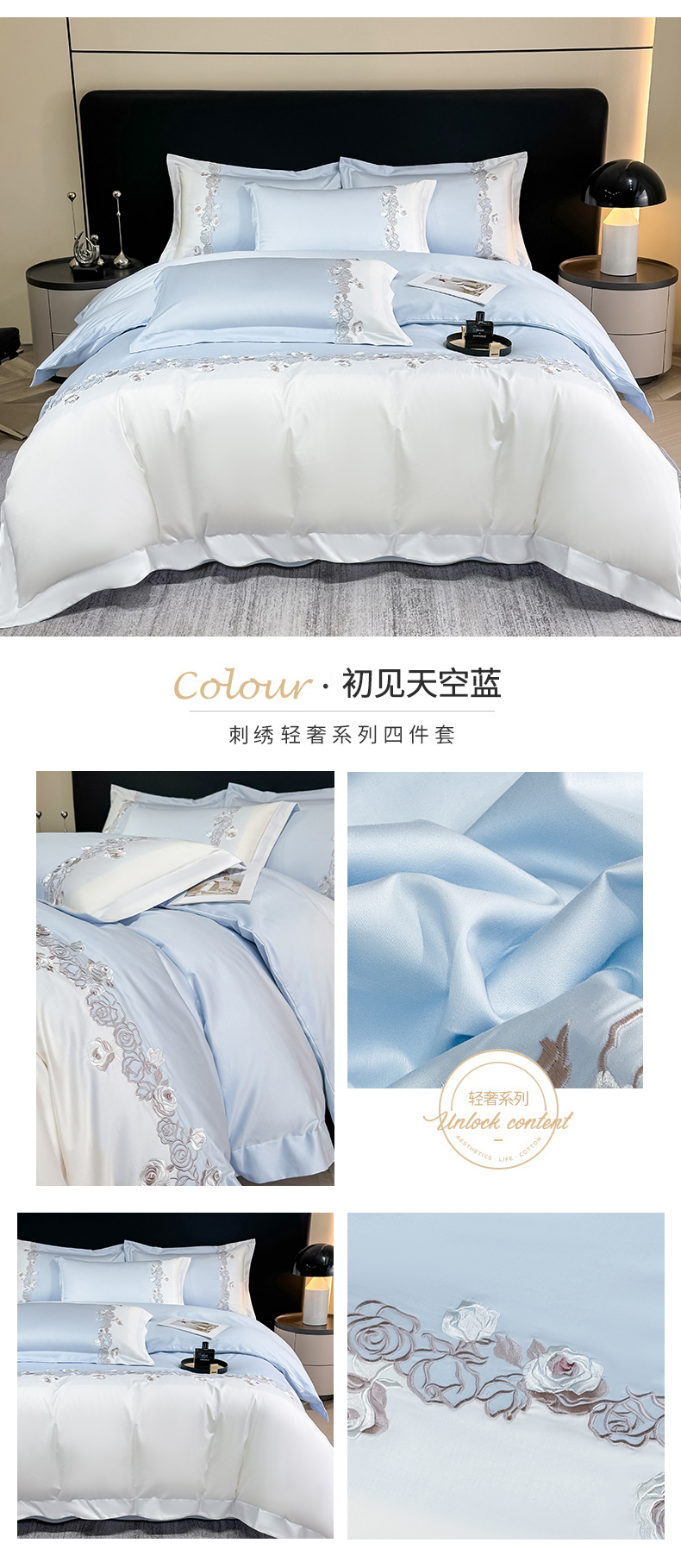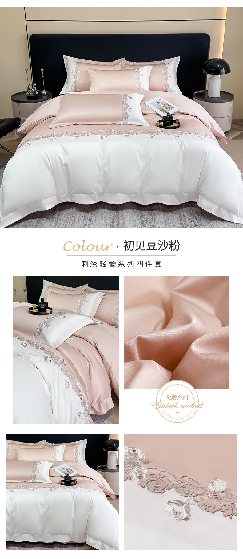 (总)KA家纺 2025新款冬季设计师款牛奶绒刺绣四件套沐言系列,沐言白+卡其,沐言白+蓝,沐言粉,沐言蓝