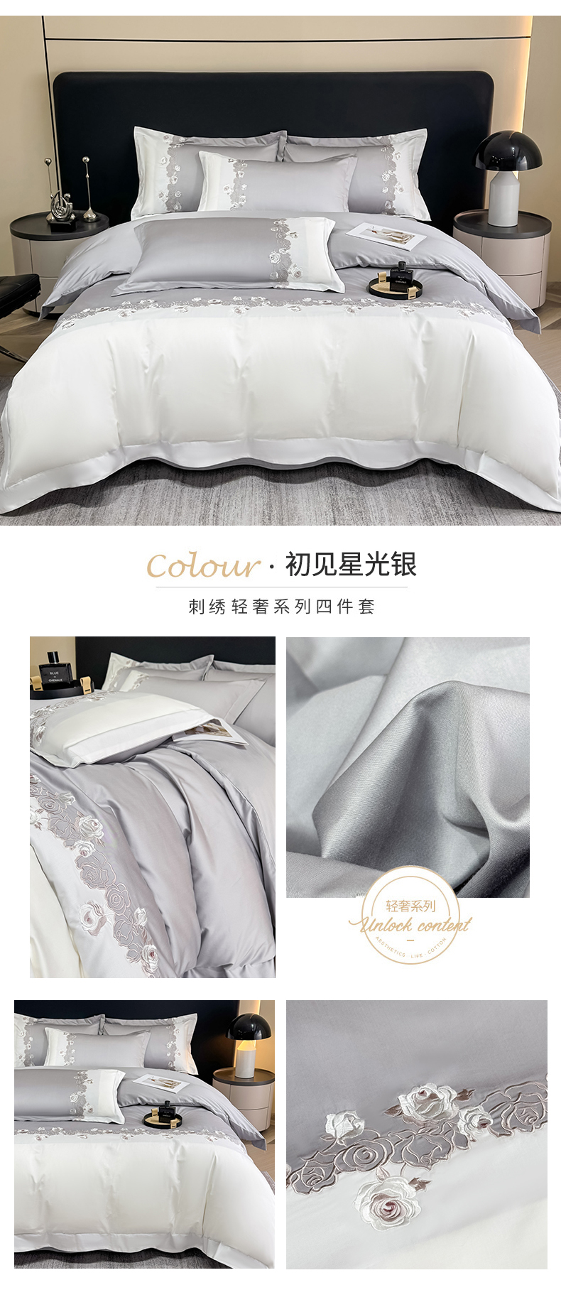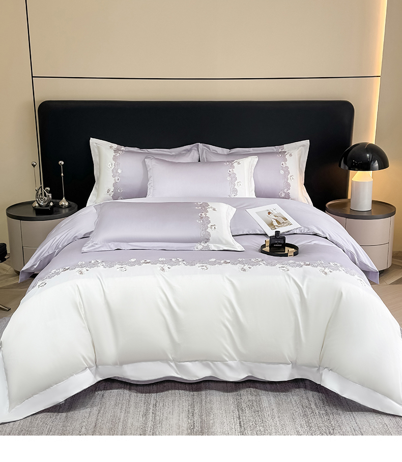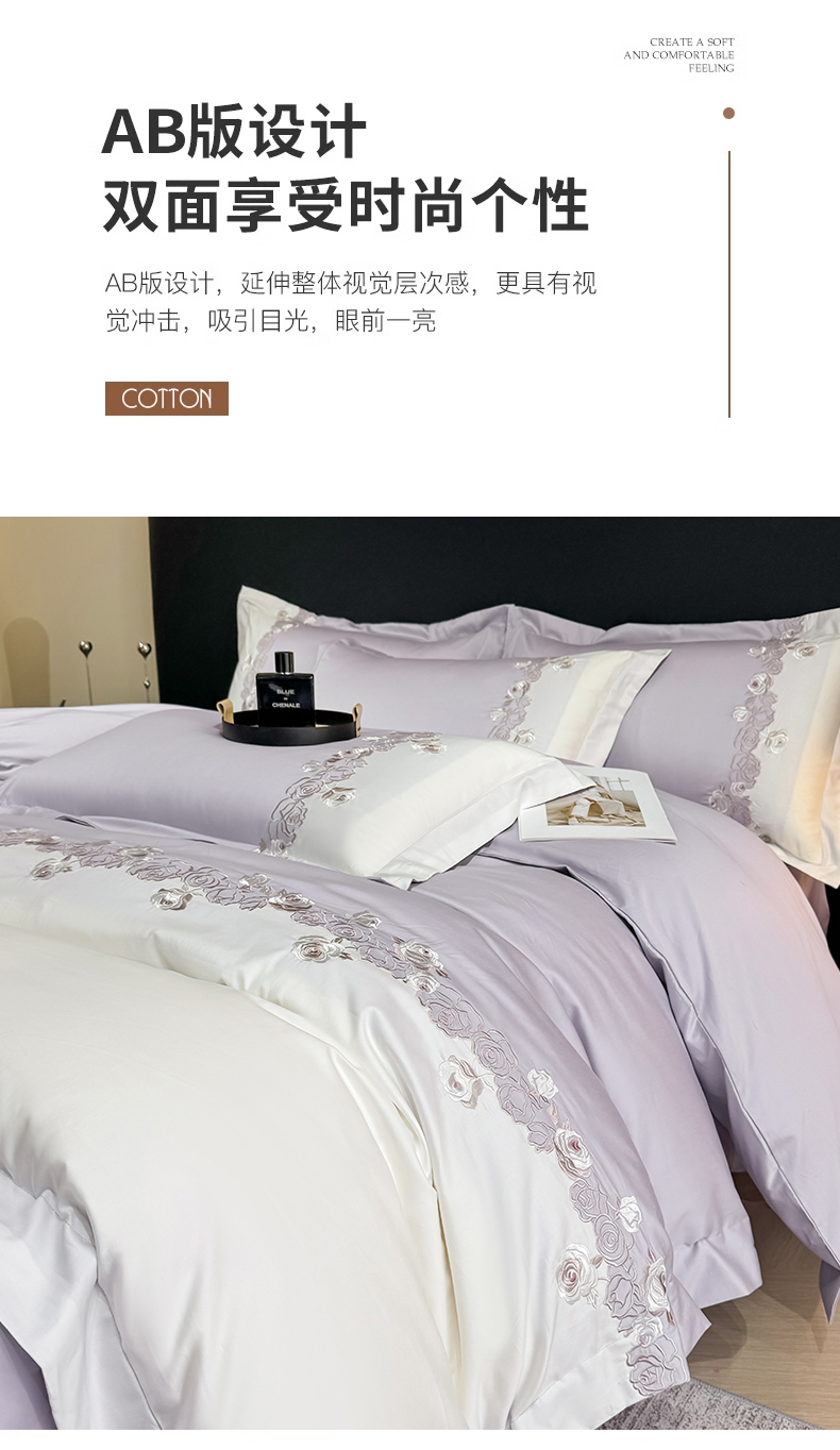 (总)KA家纺 2025春夏A类纯棉全棉贡缎绣花长绒棉四件套 初见系列