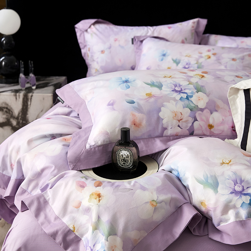(总)薏思家纺 2025新款全棉100支数码印花生态磨毛轻奢款四件套-珍珠纽扣系列,花弄影-青,花弄影-玉,花弄影-紫,紫纱春日