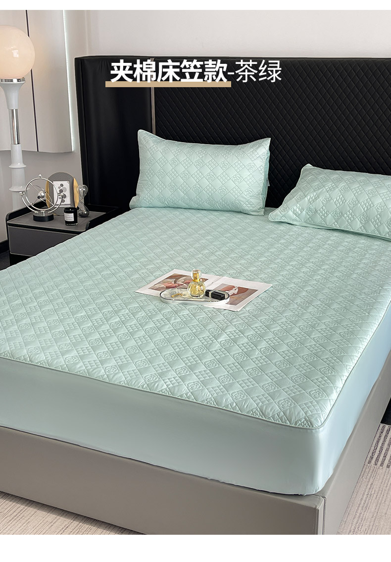 (总)2025A类母婴级长绒棉夹棉床笠三件套纯棉全棉加厚席梦思床罩床套四季款保护罩,茶绿,黛紫,慕蓝,奶玉,颜粉