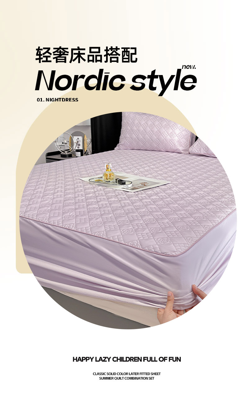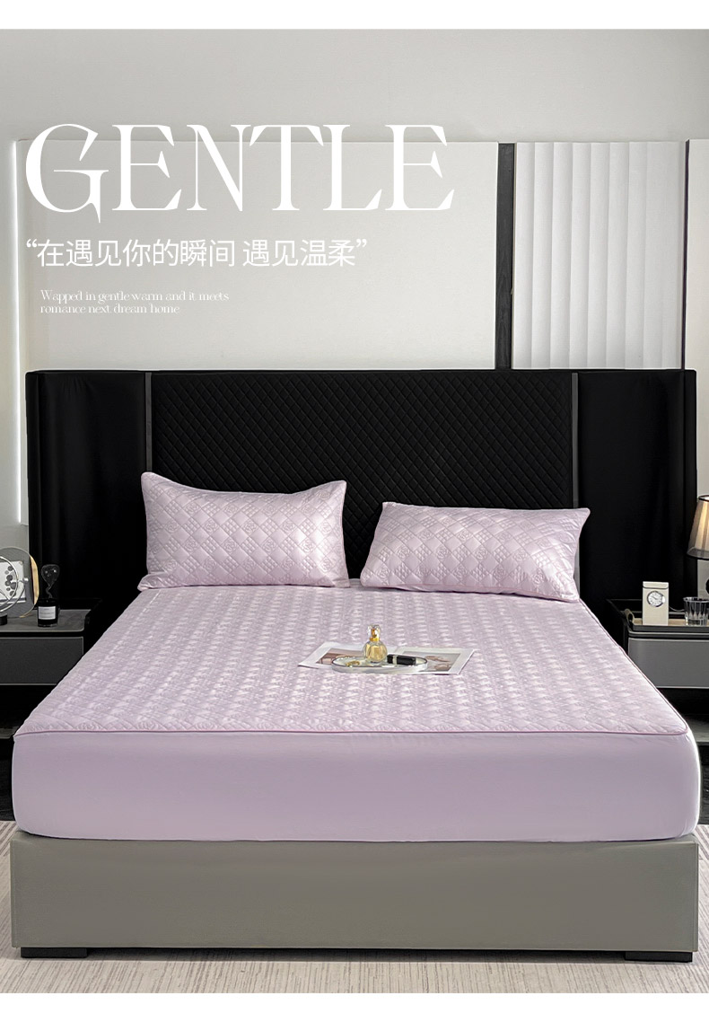 商品名称:2025A类母婴级长绒棉夹棉床笠三件套纯棉全棉加厚席梦思床罩床套四季款保护罩 黛紫