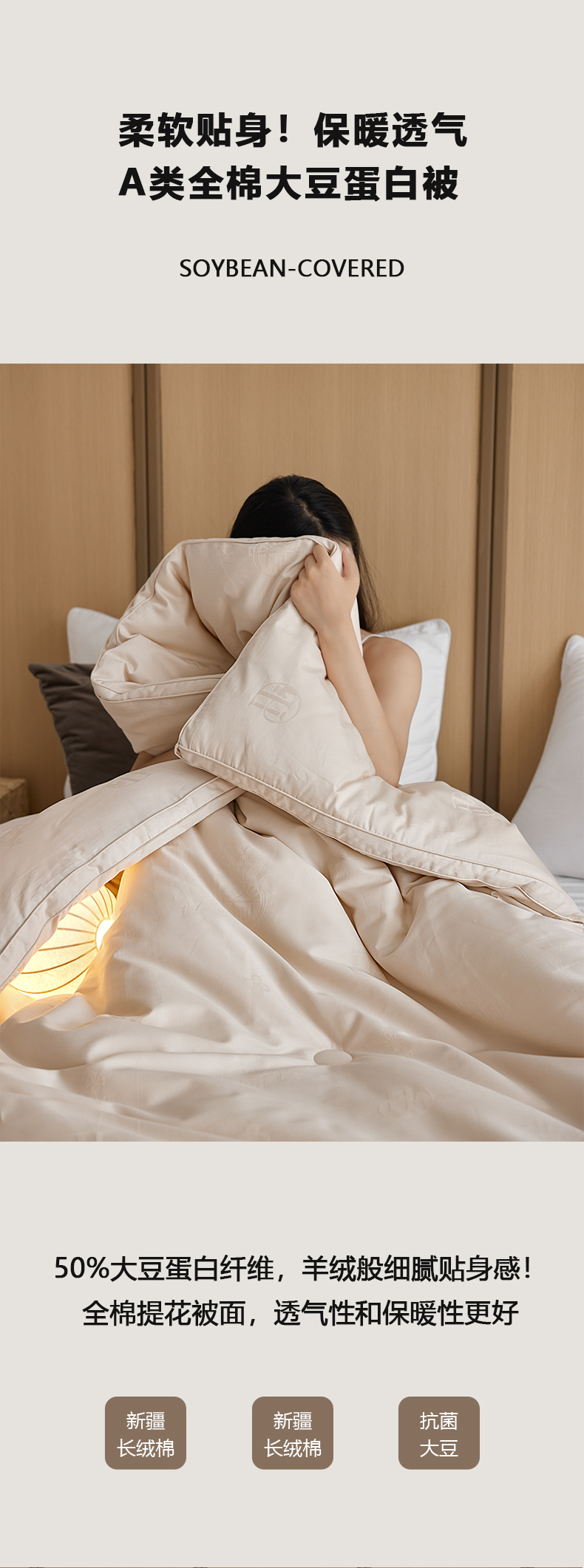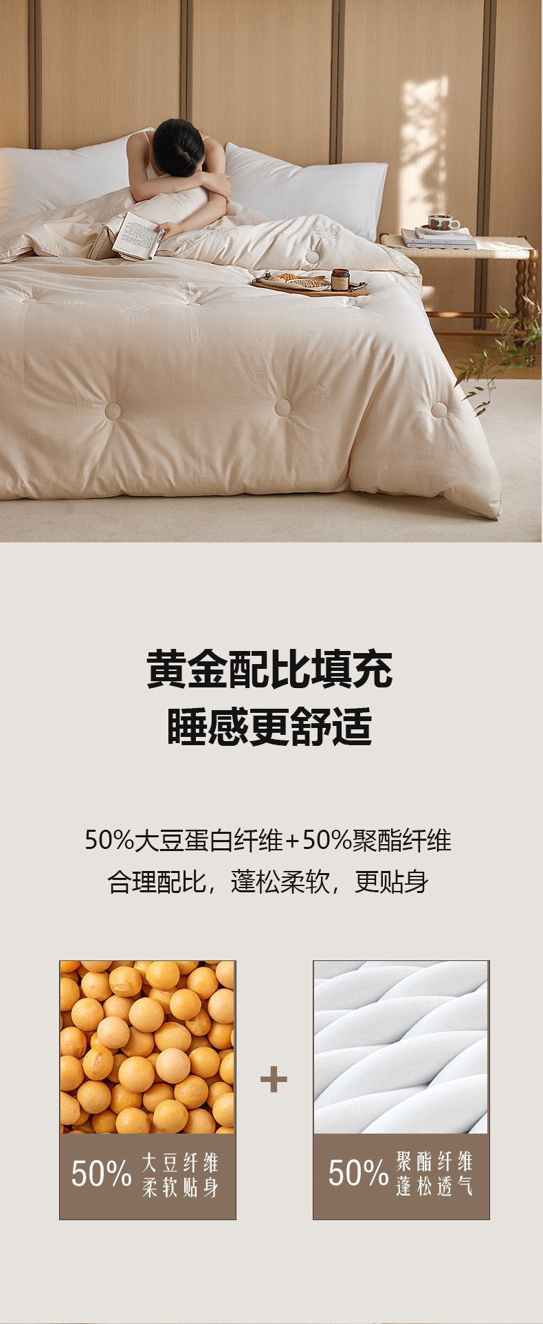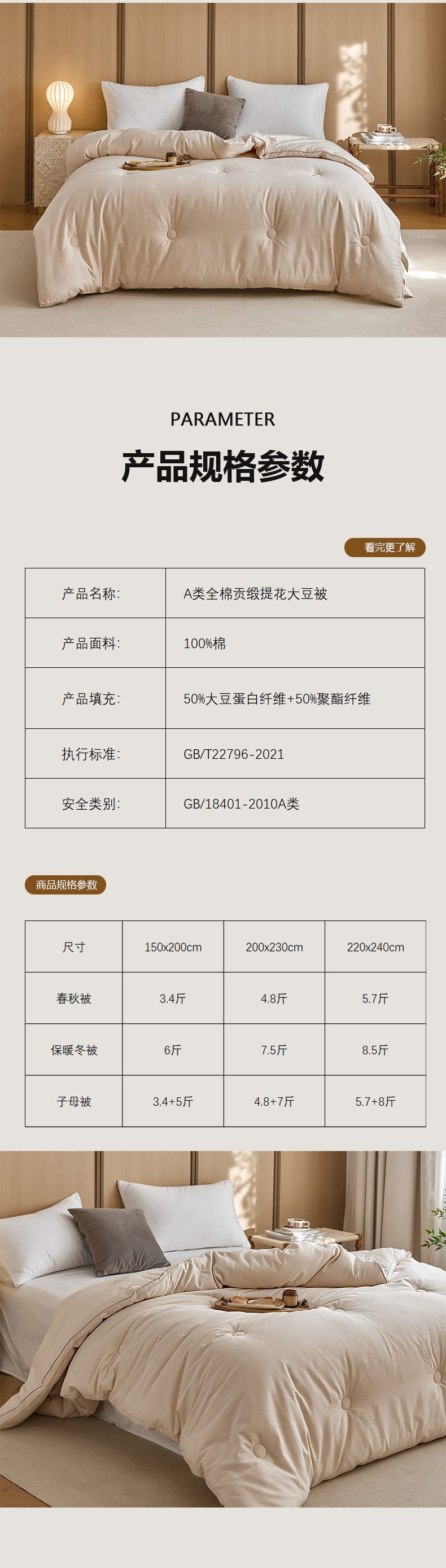 当前位置: 91家纺网 > 商品网购 > 被子 > 棉被 > ROZ home 蕊姿家居 2025新款A类全棉贡缎提花 至尊大豆 被芯系列 浅香槟