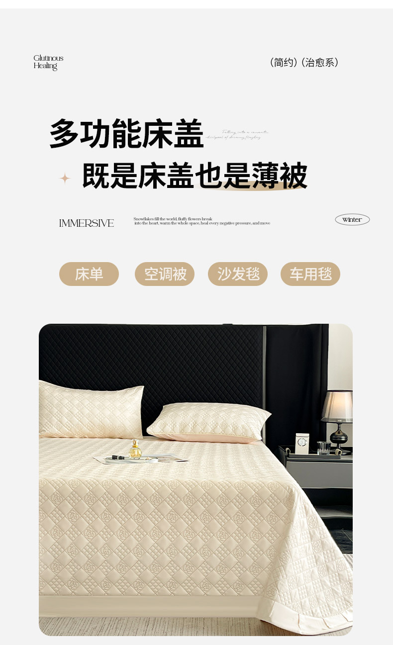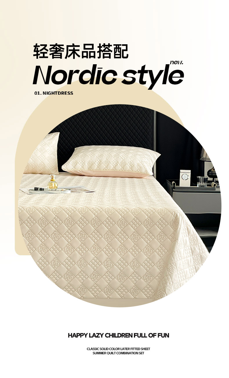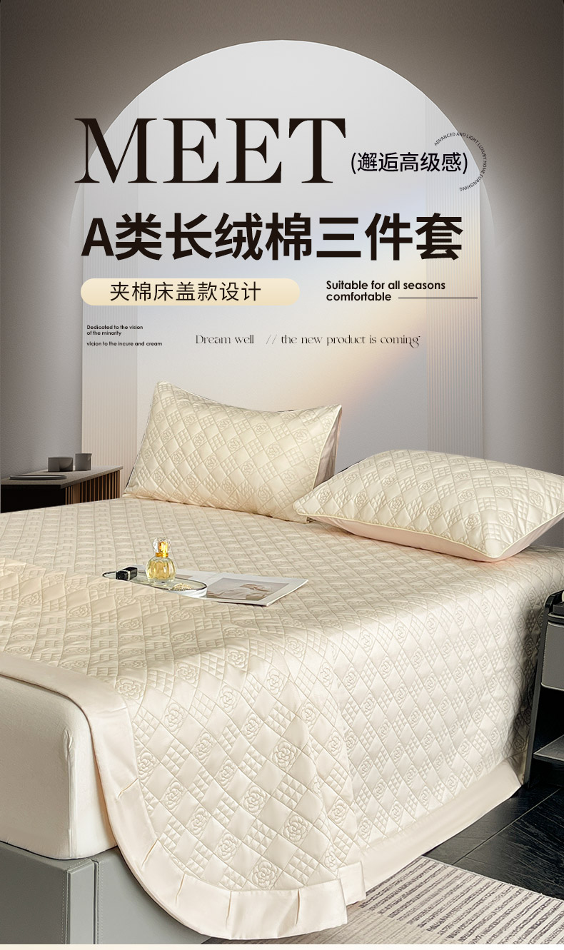 商品名称:2025新款A类100支长绒棉夹棉床盖三件套全棉纯棉加厚绗绣床单四季款床上用品 奶玉