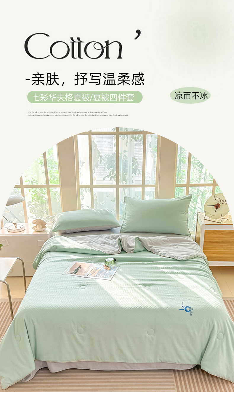 当前位置: 91家纺网 > 商品网购 > 被子 > 夏被 > 芙绣 2025新款七彩华夫格提花夏被四件套夏凉被空调被 果绿+灰