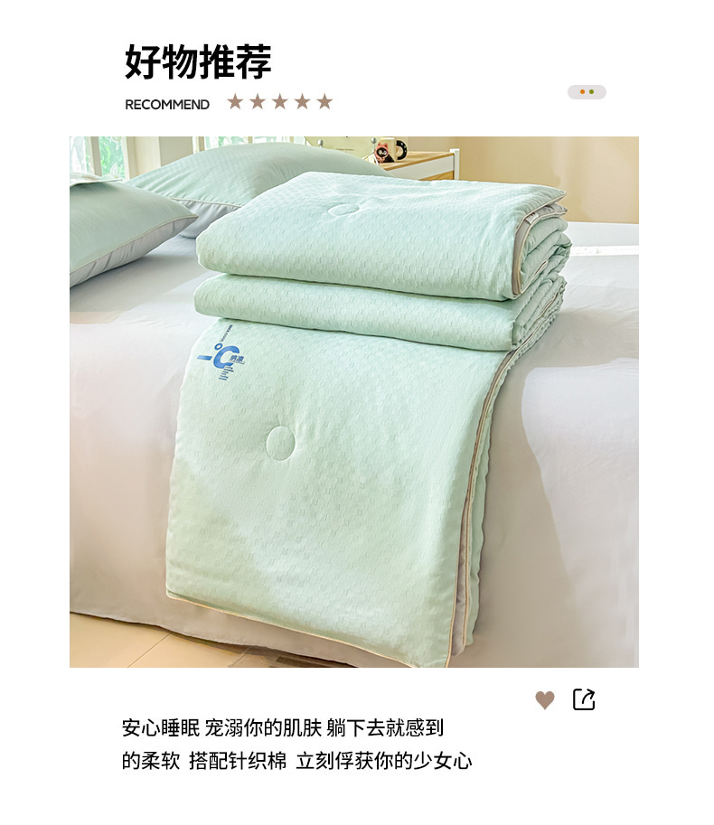 • 91家纺网 家纺一手货源 找家纺 芙绣 芙绣 2025新款七彩华夫格提花夏被四件套夏凉被空调被 果绿+灰