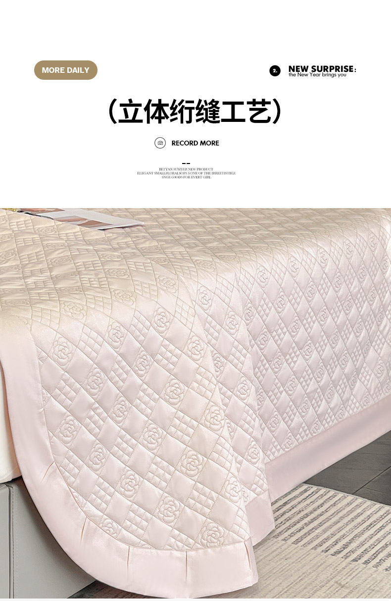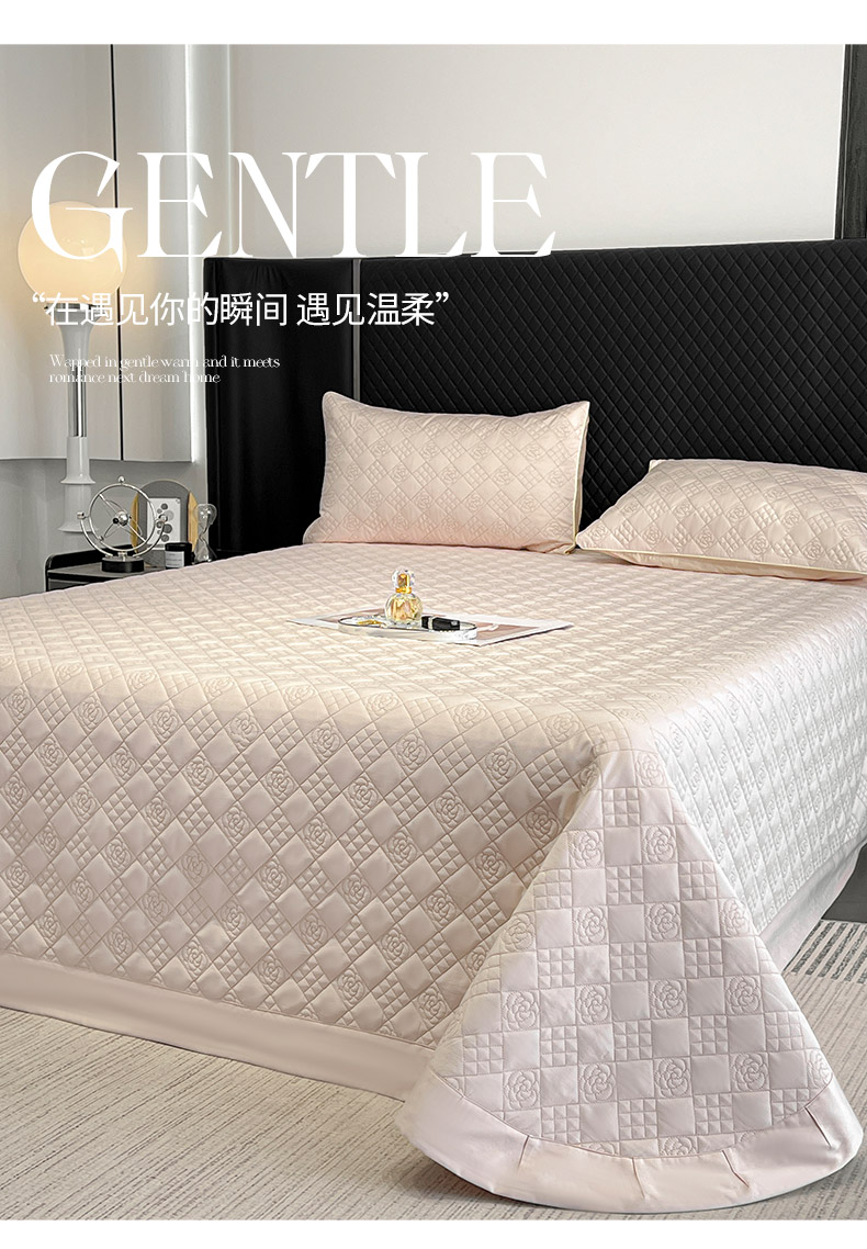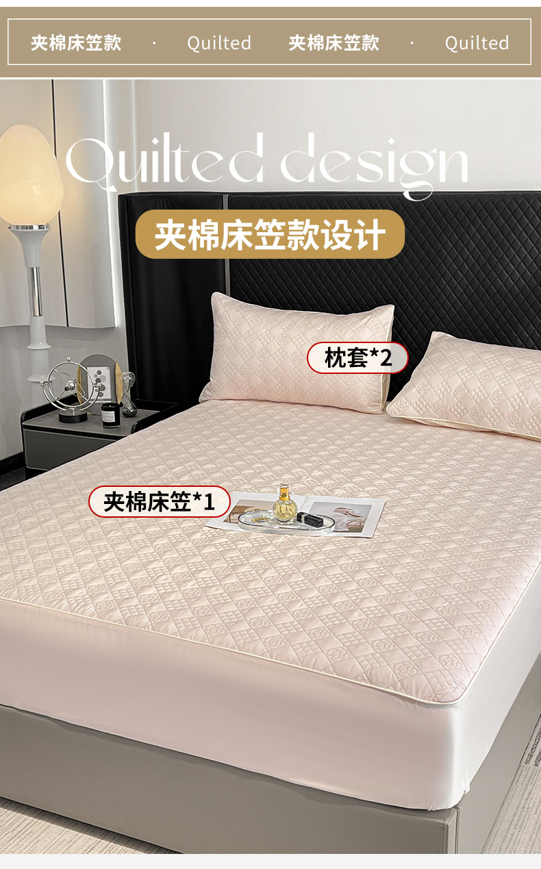 商品名称:2025轻奢风A类长绒棉夹棉床盖床笠三件套纯色绗绣四季高级感纯色全棉纯棉床上用品 颜粉