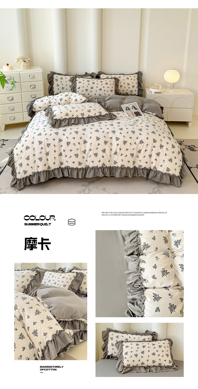 商品名称:金米诺 2025新款韩版有氧针织棉双层纱四件套 摩卡