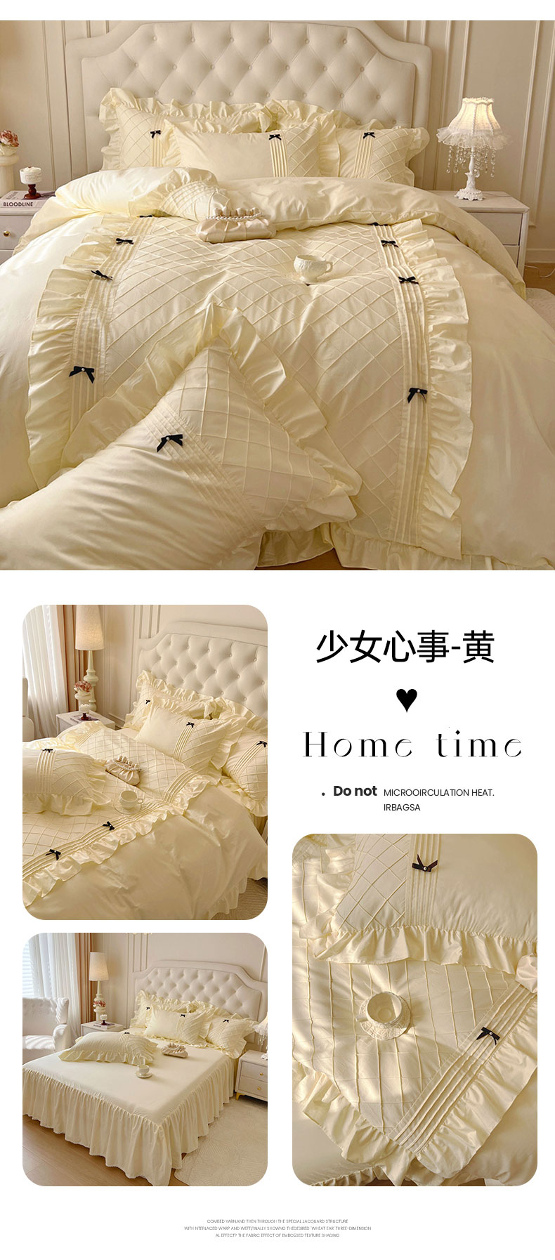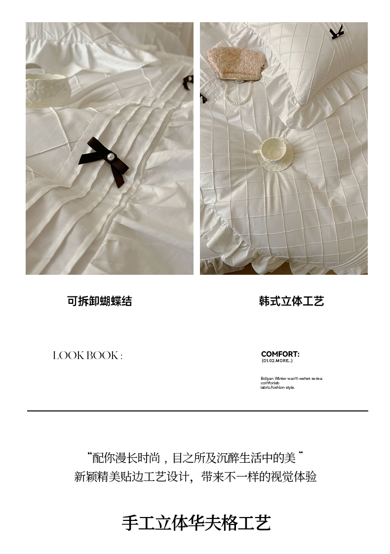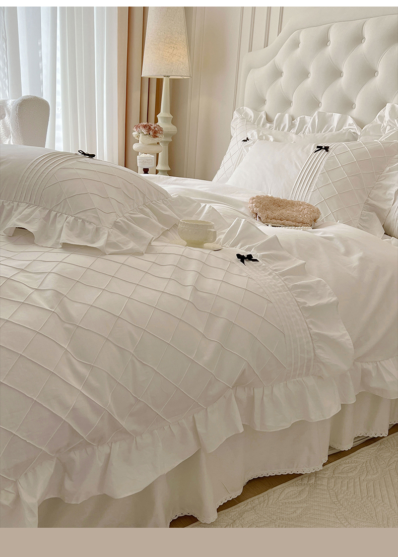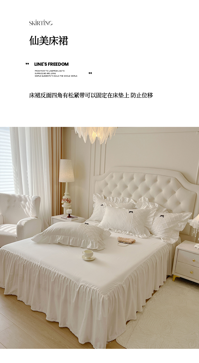 当前位置: 91家纺网 > 商品网购 > 床品套件 > 四件套 > 全棉普通四件套 > 惯盈家纺 2025新款韩版全棉四件套华夫格蝴蝶结床裙款-少女心事系列(含买家秀) 白
