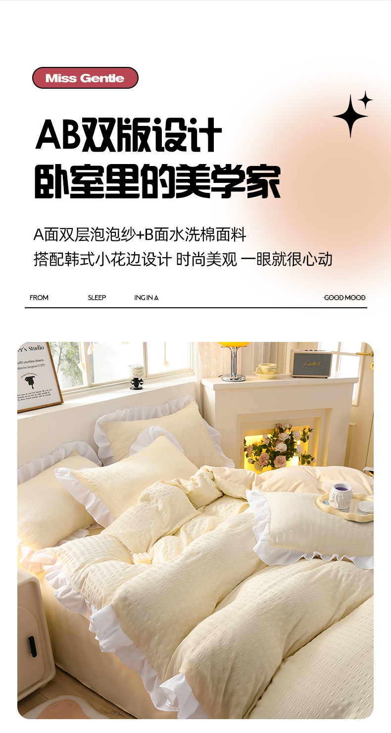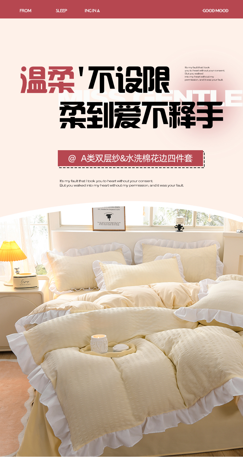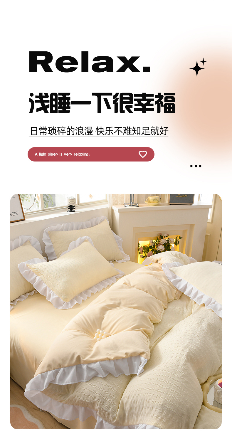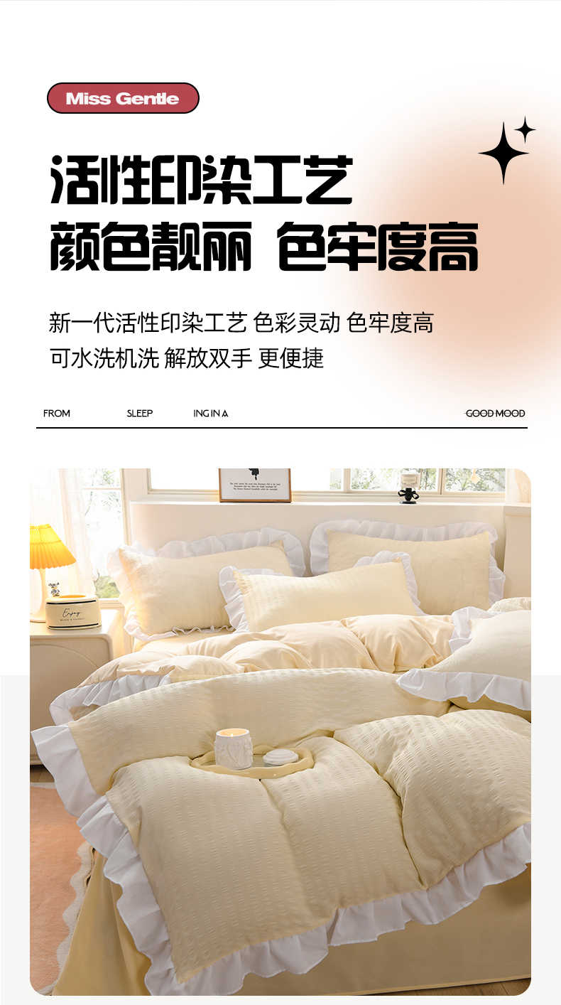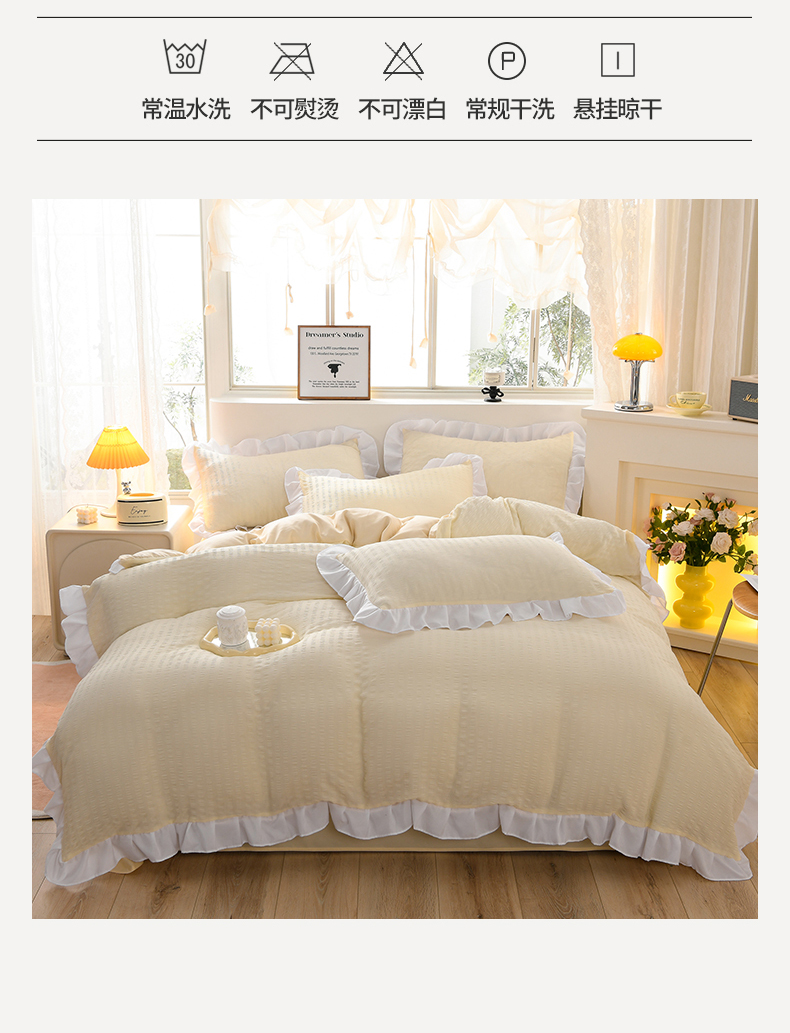 当前位置: 91家纺网 > 商品网购 > 床品套件 > 四件套 > 水洗棉四件套 > 迪拜家纺 2025新款韩版花边水洗棉四件套 韩版-奶油白