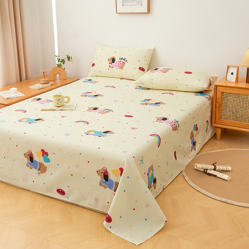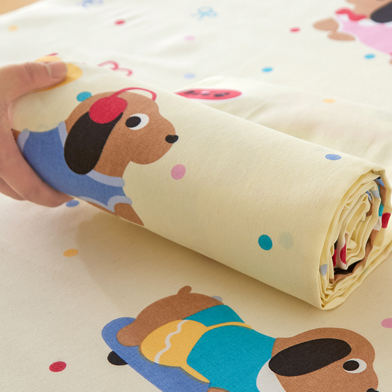 棉乐町家居 2025新款锦柔老粗布床单老粗布凉席三件套 小狗乐园