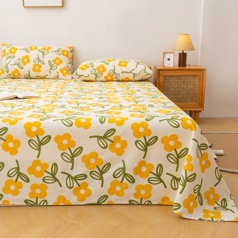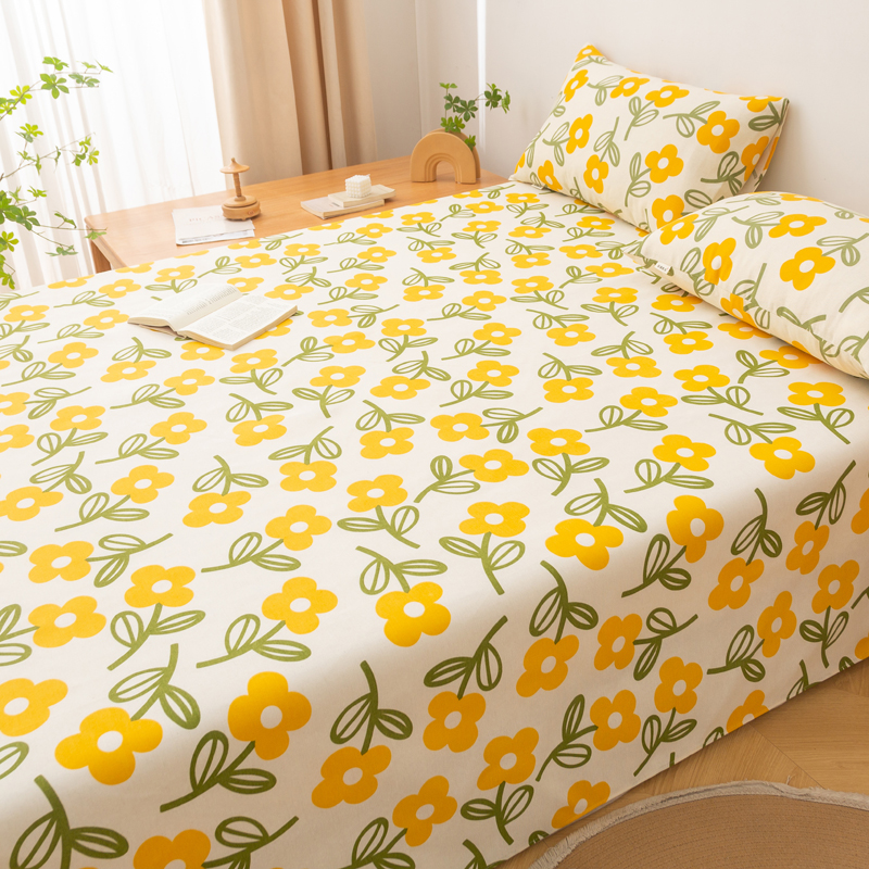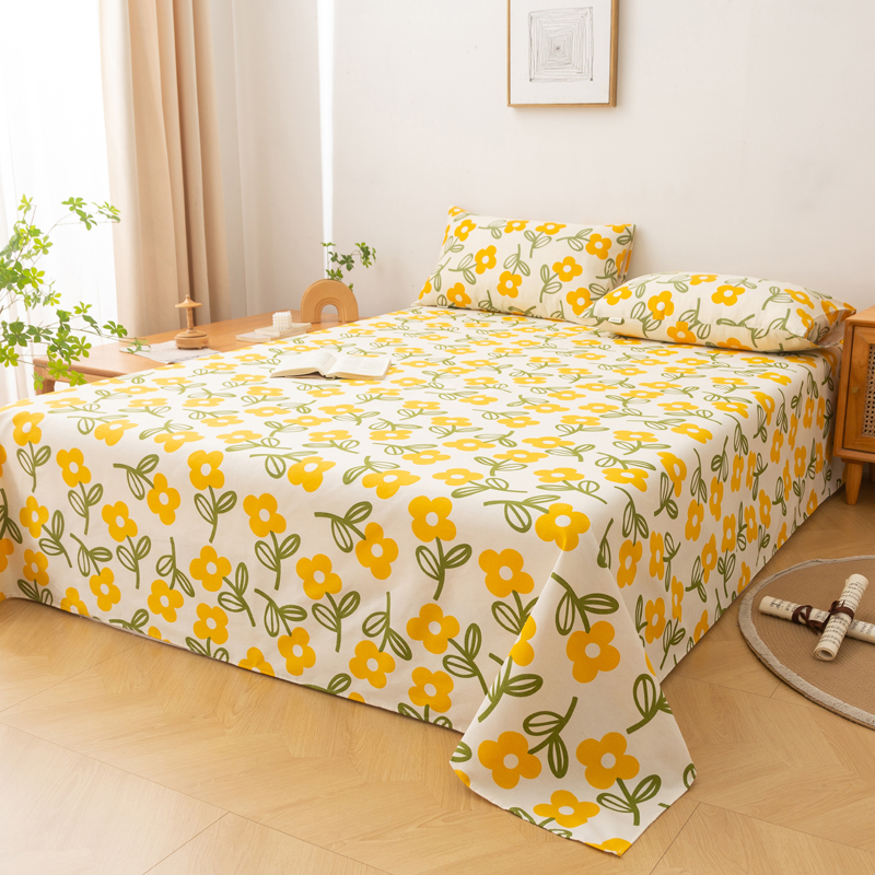 金泰莱 2025新款锦柔老粗布床单老粗布凉席三件套 黄兰