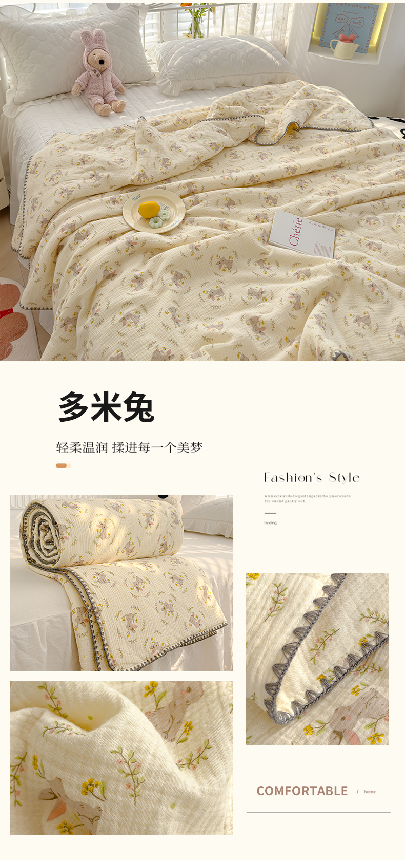 商品名称:芯恋 2025新款母婴级全棉皱皱纱儿童被双层纱夏被 多米兔