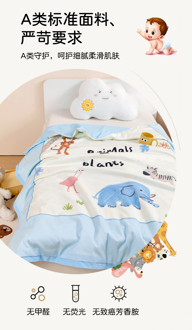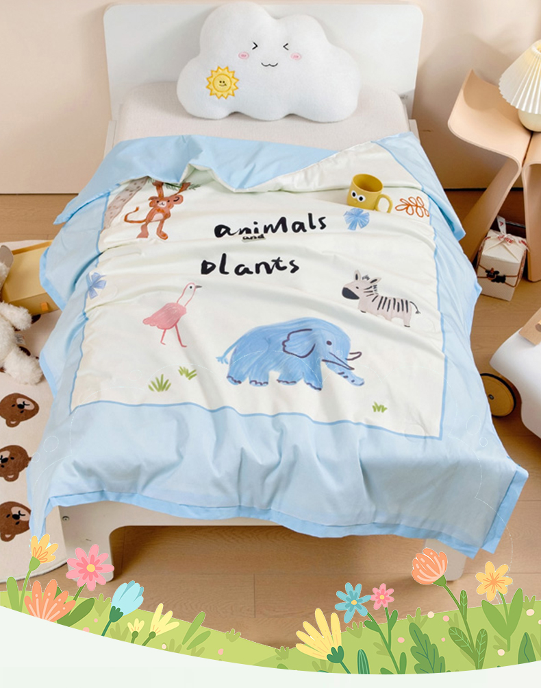 御棉坊 2025新款60长绒棉数码印花夏被夏凉被空调被 动物聚会