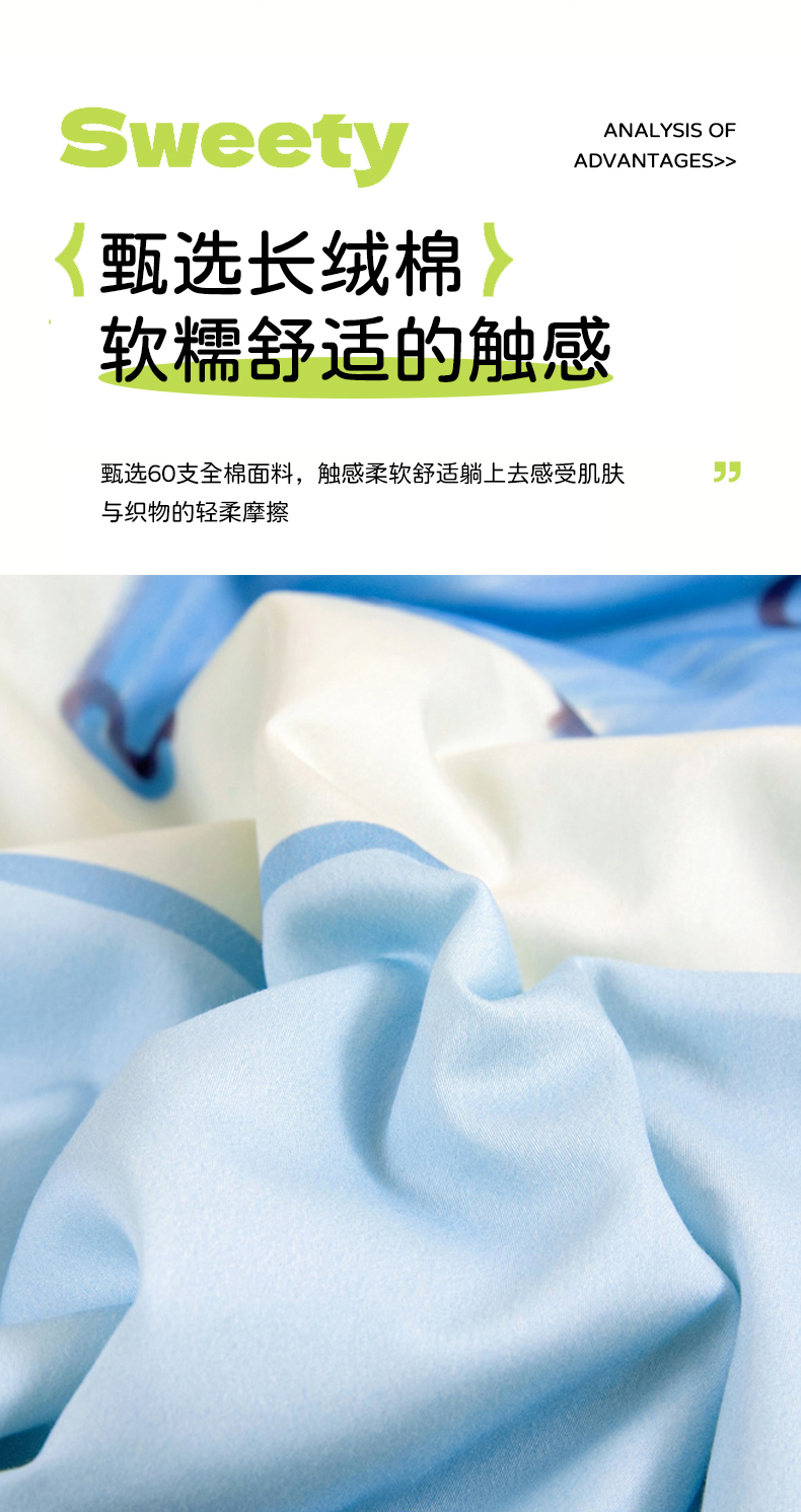 (总)御棉坊 2025年A类60支长绒棉数码印花幼儿园儿童套件,波点小屋,动物聚会,苹果恐龙,骑车小猫,星彩小兔,幸运小鹿,音乐派对