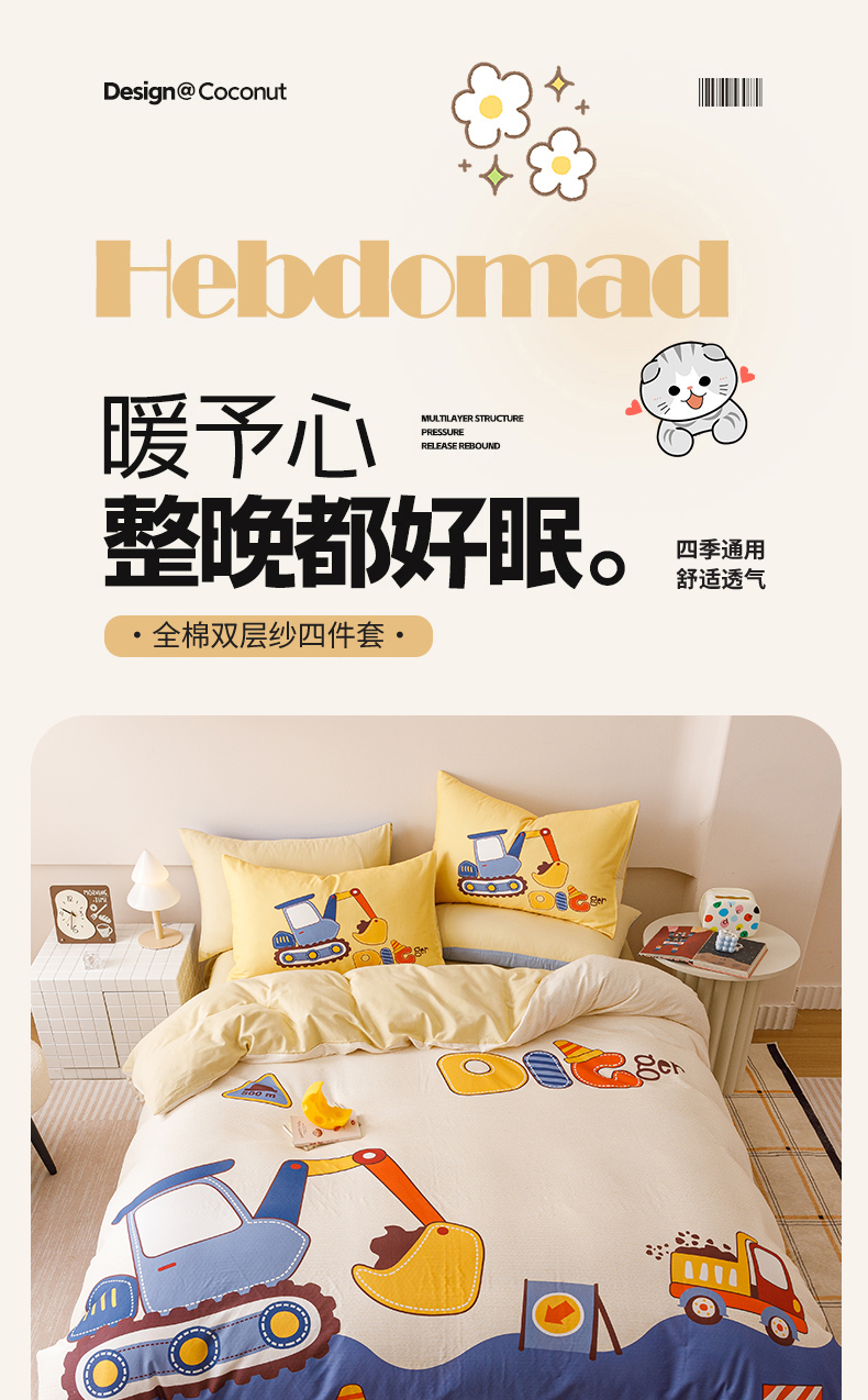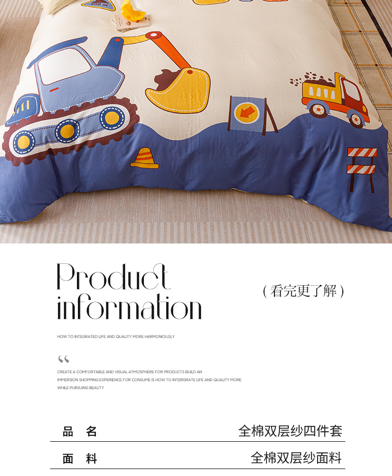 商品名称:2025新款设计师专版全棉双层纱四件套 积木世界