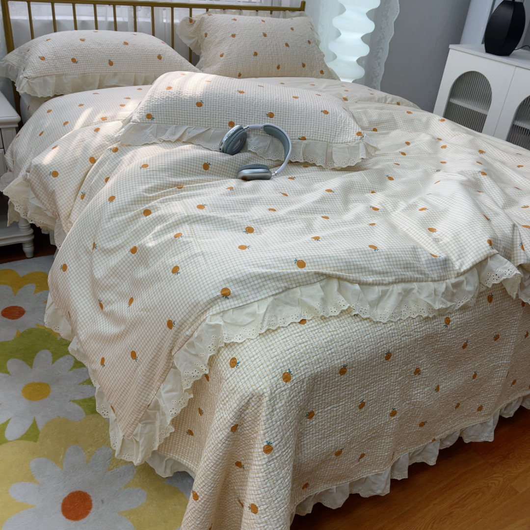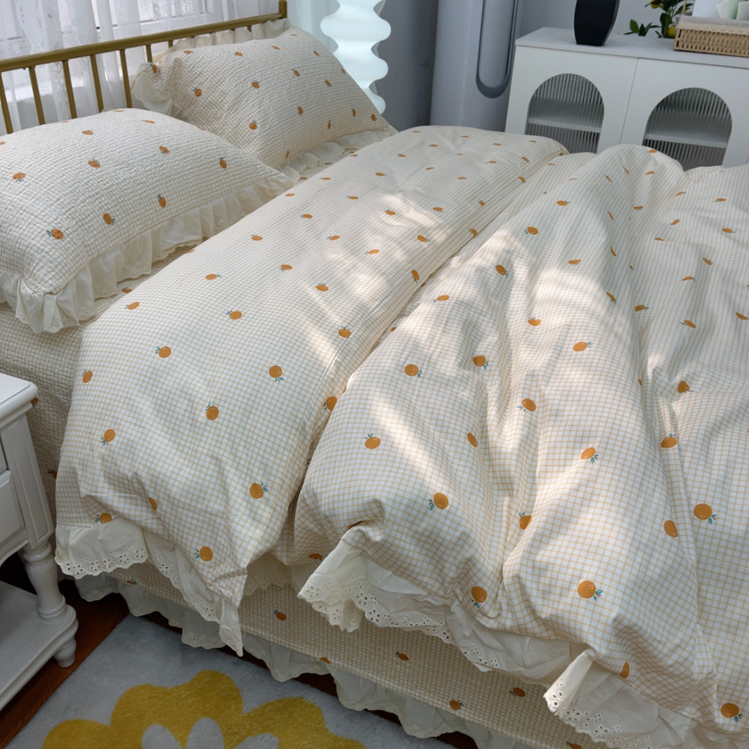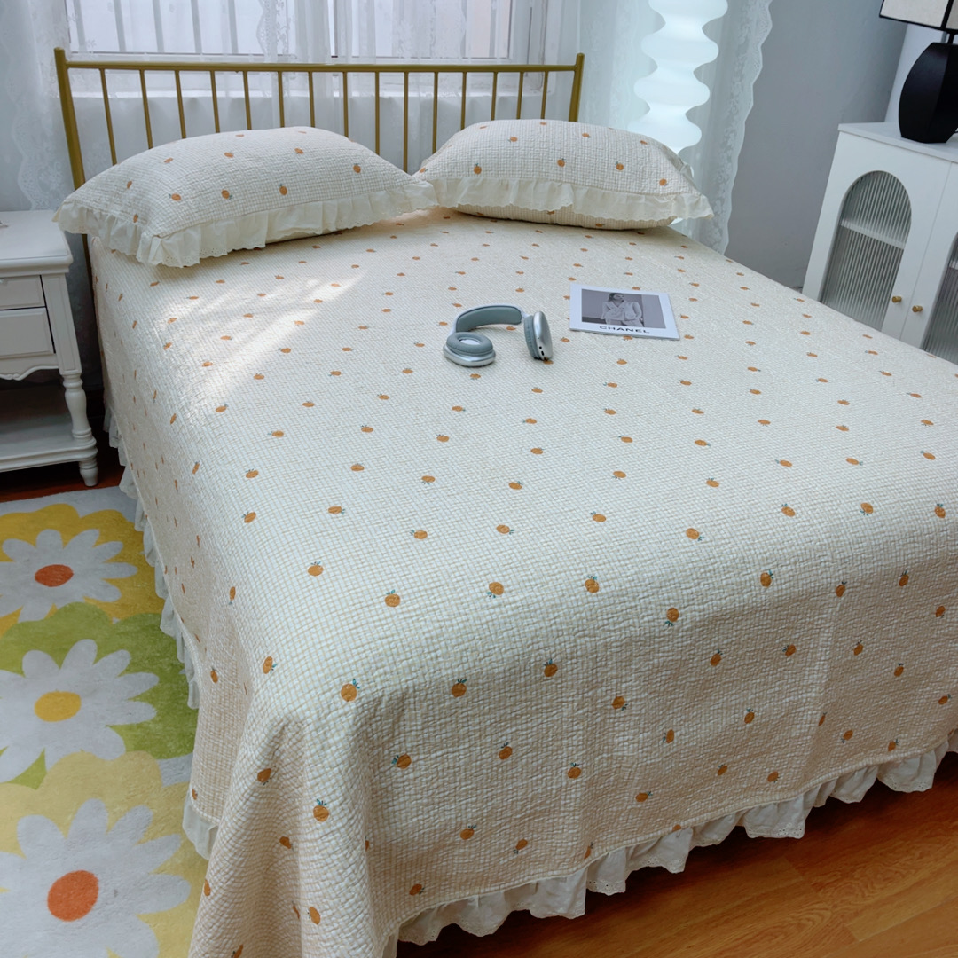 商品名称:暖居 2025春夏款高温砂洗棉花床盖三件套被套四件套同款纯棉夏被空调被四季 小甜橘