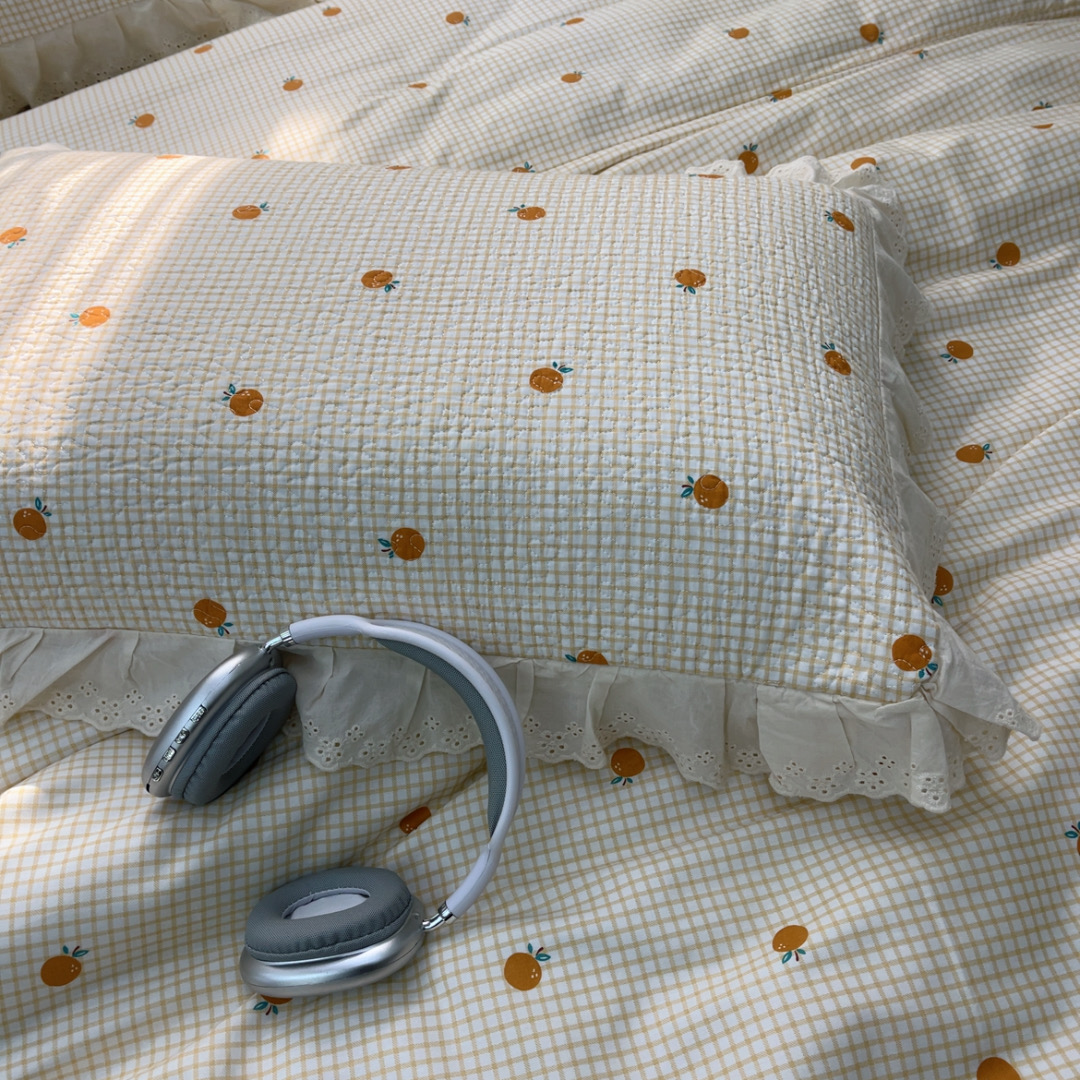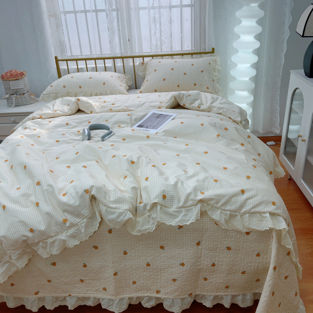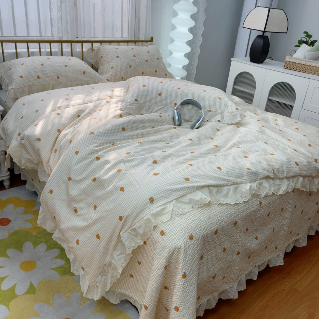 商品名称:暖居 2025春夏款高温砂洗棉花床盖三件套被套四件套同款纯棉夏被空调被四季 小甜橘