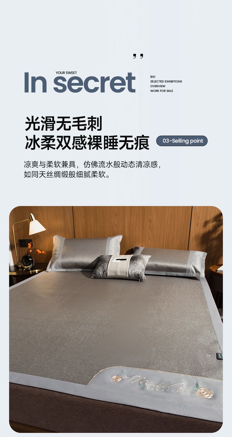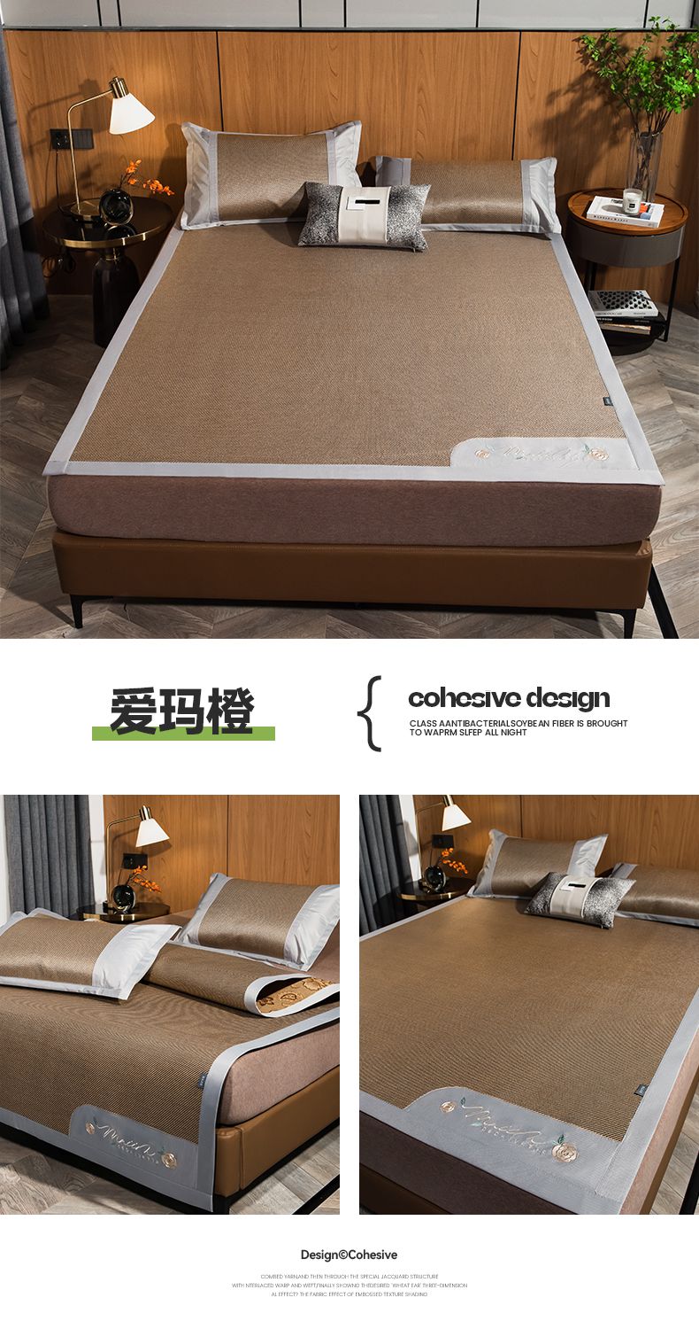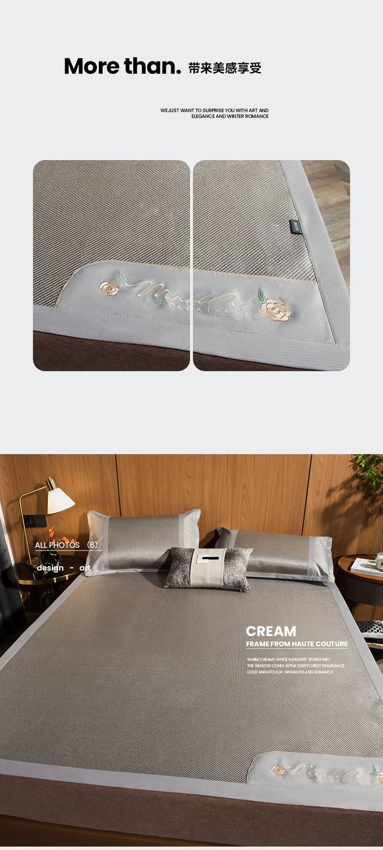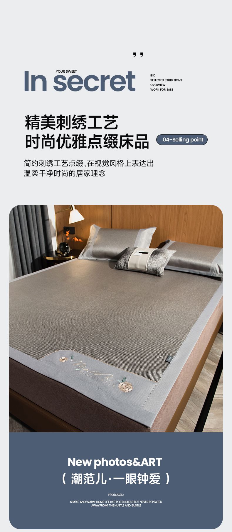 (总)摩妮卡 2025新款刺绣双面冰藤席床席款三件套