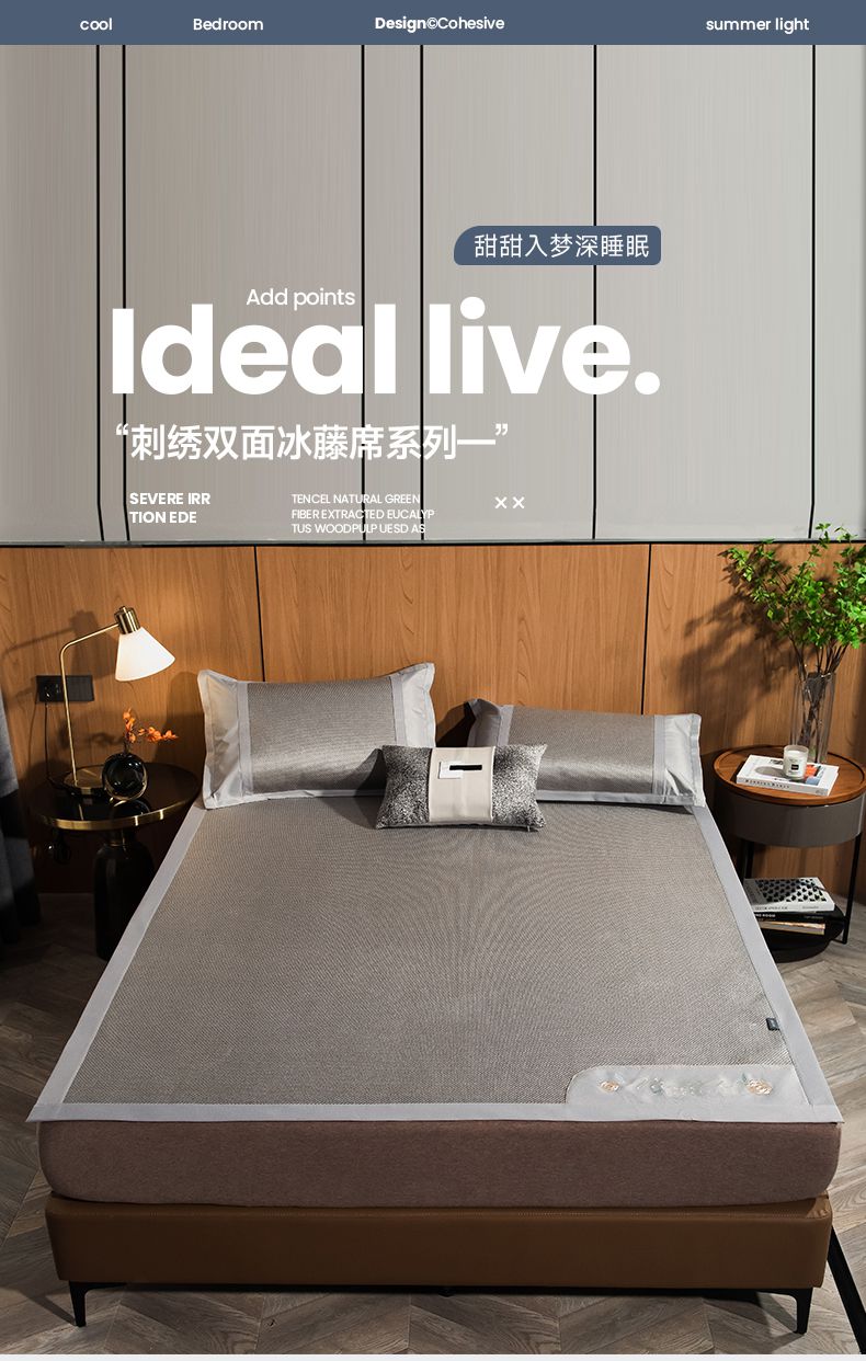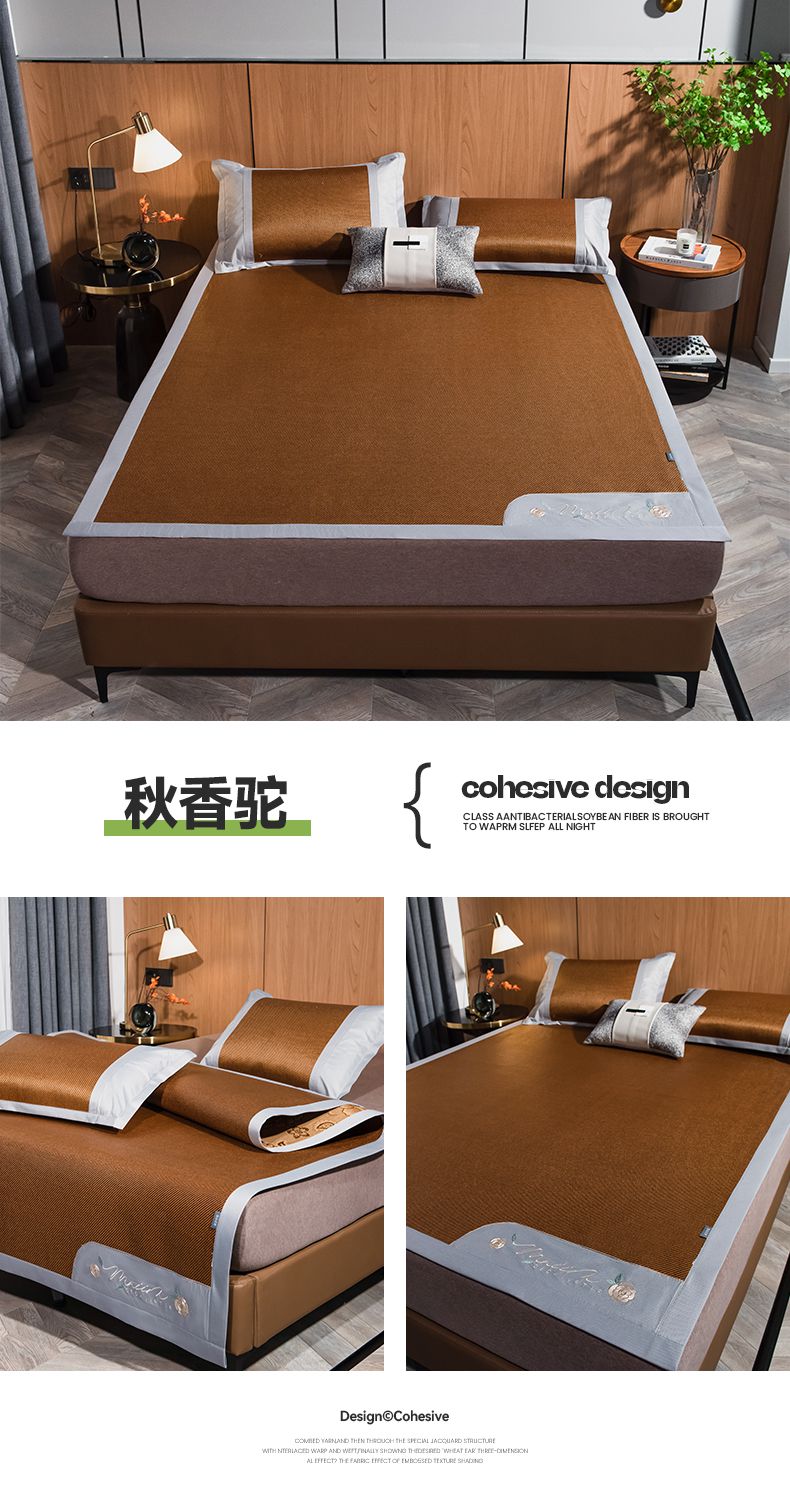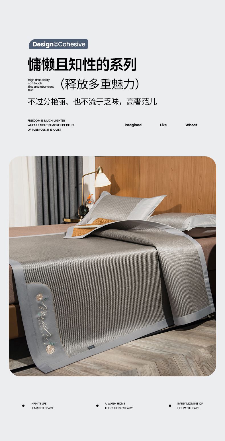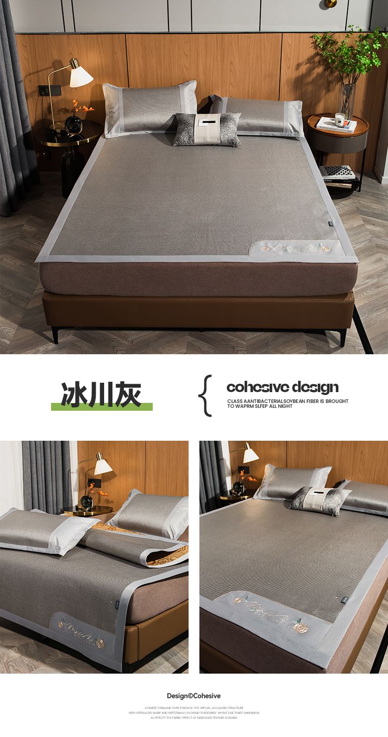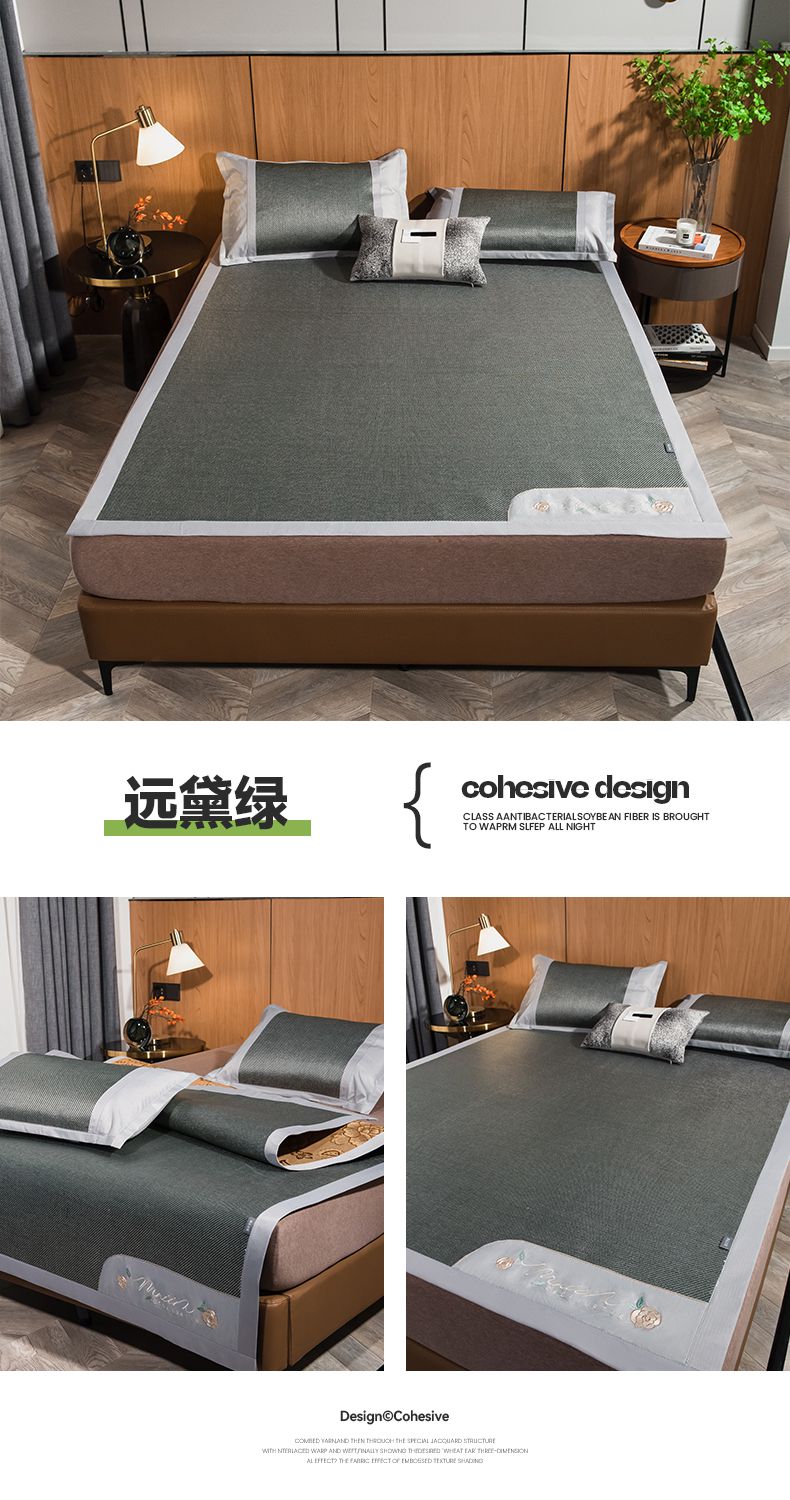 (总)摩妮卡 2025新款刺绣双面冰藤席床席款三件套