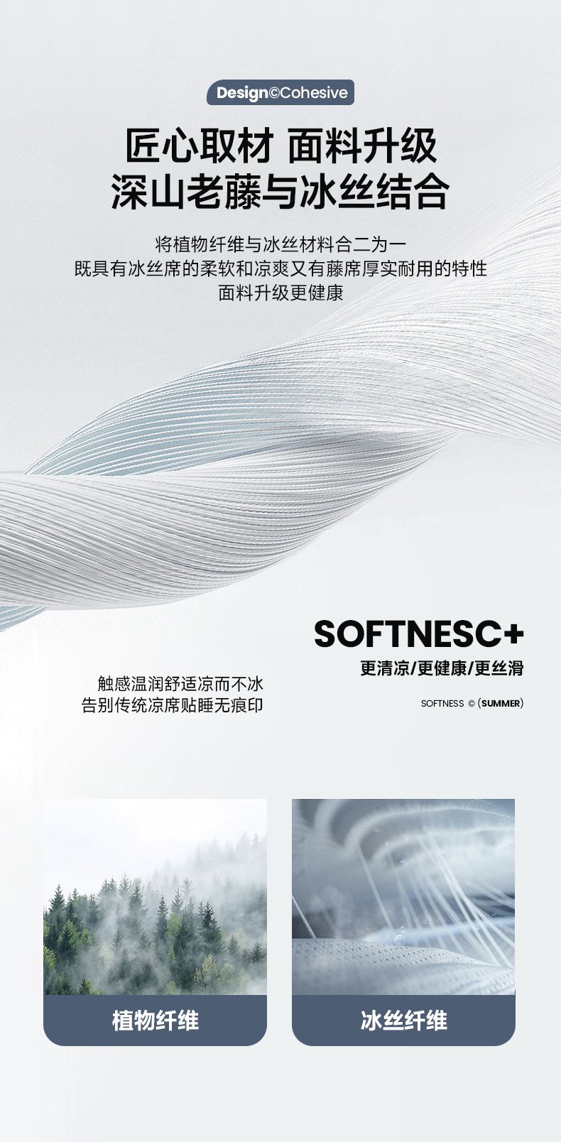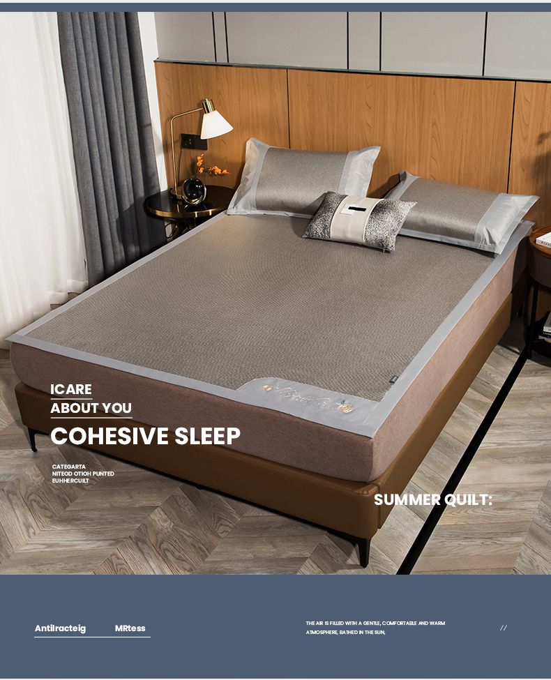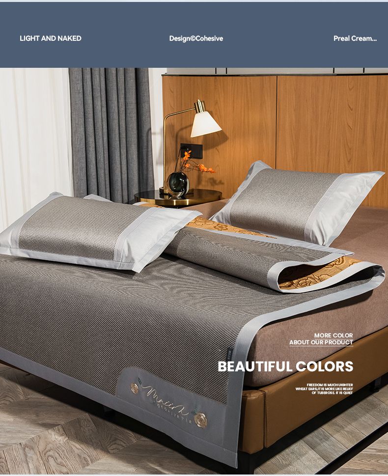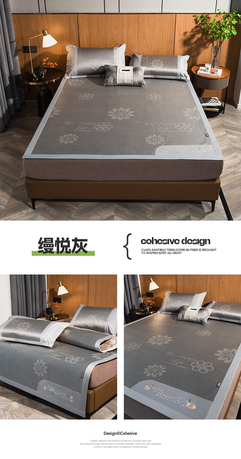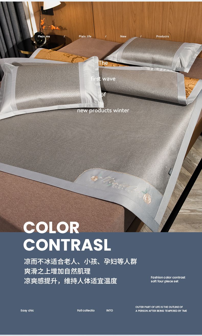 (总)摩妮卡 2025新款刺绣双面冰藤席床席款三件套