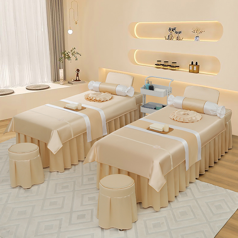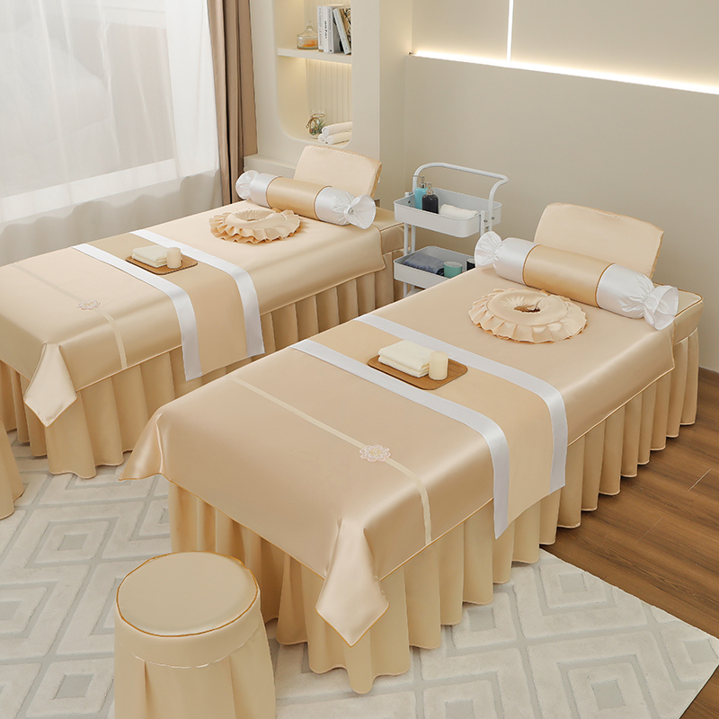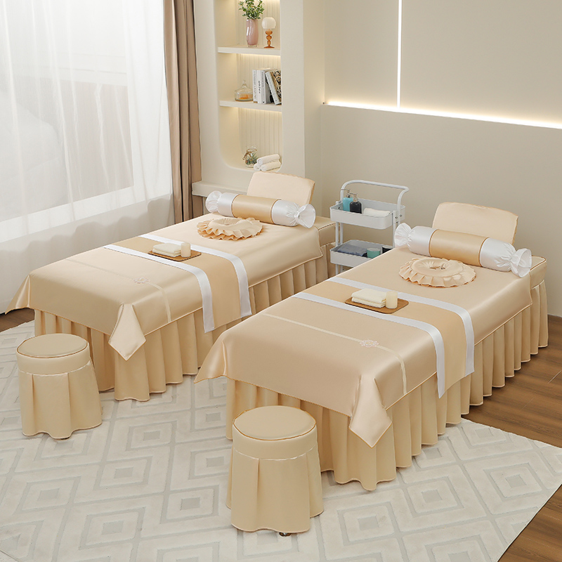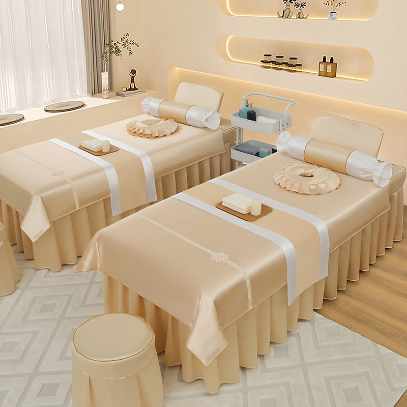 (总)芙怡 2025春夏新款8031款棉麻美容床罩四件套-未央系列,未央-蝶翅蓝,未央-格调 灰,未央-蜜桃 粉,未央-浅咖,未央-浅驼,未央-斑斓绿