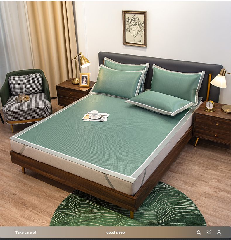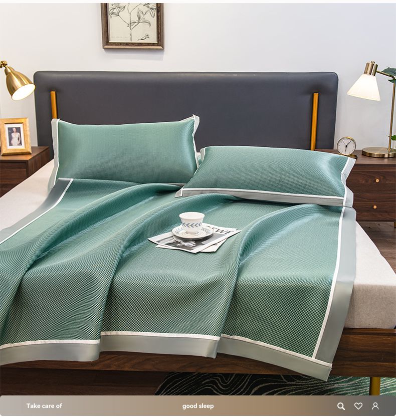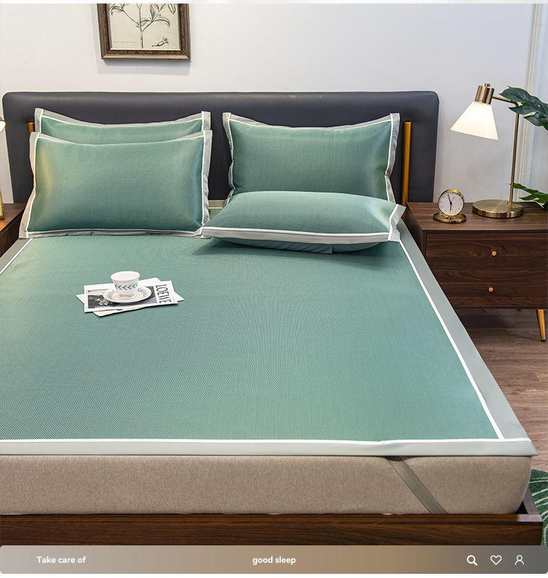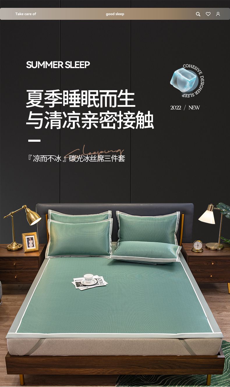摩妮卡 2025新款碳光席床席款三件套可洗冰丝席 裹玉绿