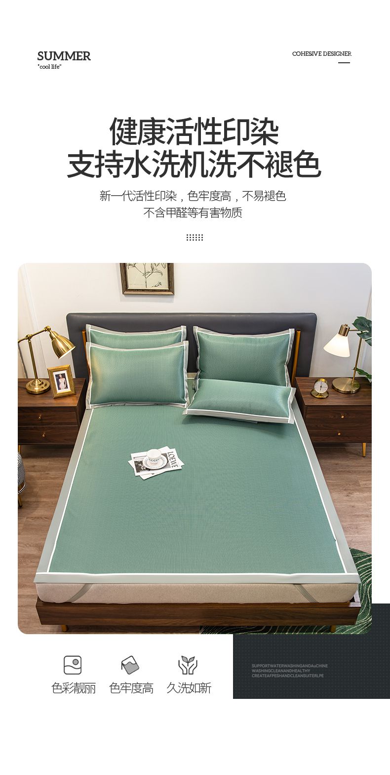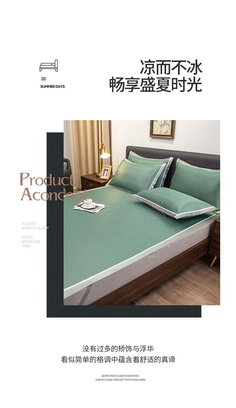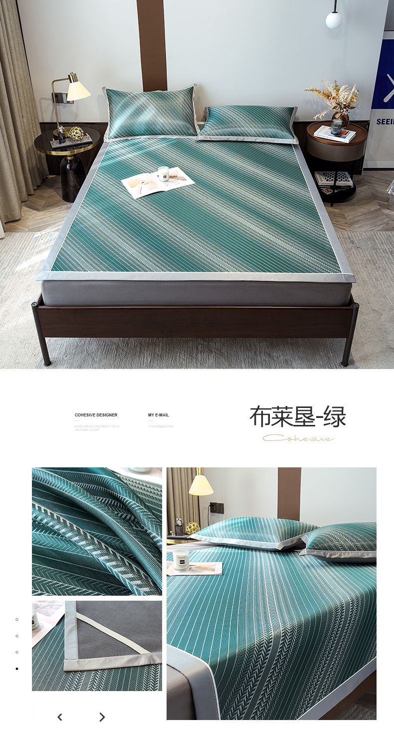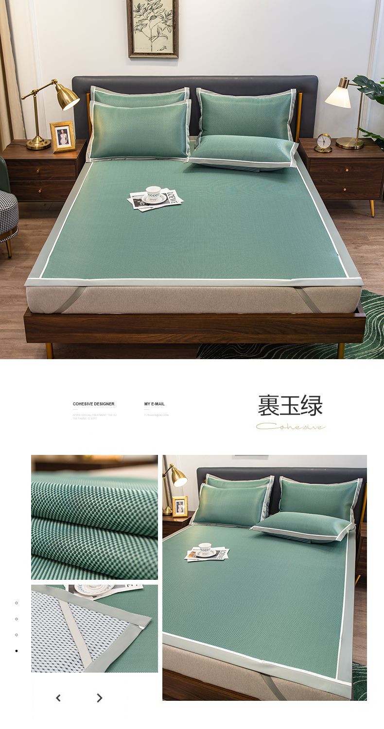 商品名称:摩妮卡 2025新款碳光席床席款三件套可洗冰丝席 裹玉绿