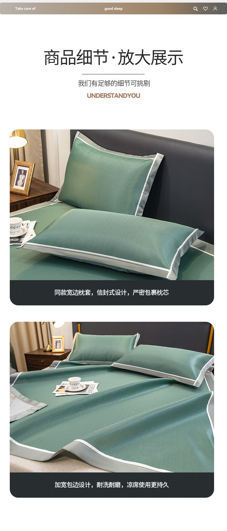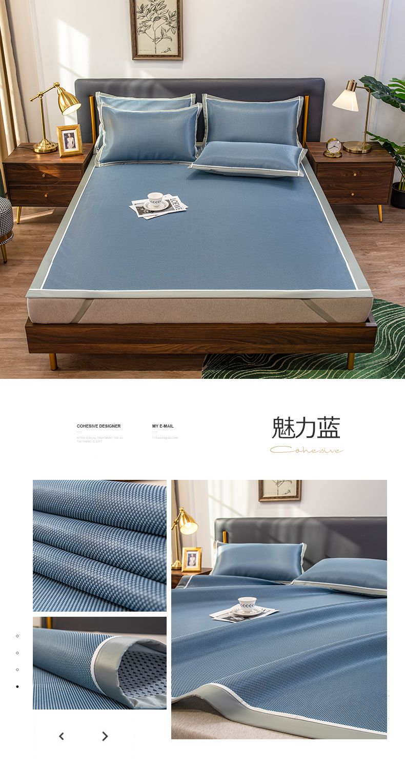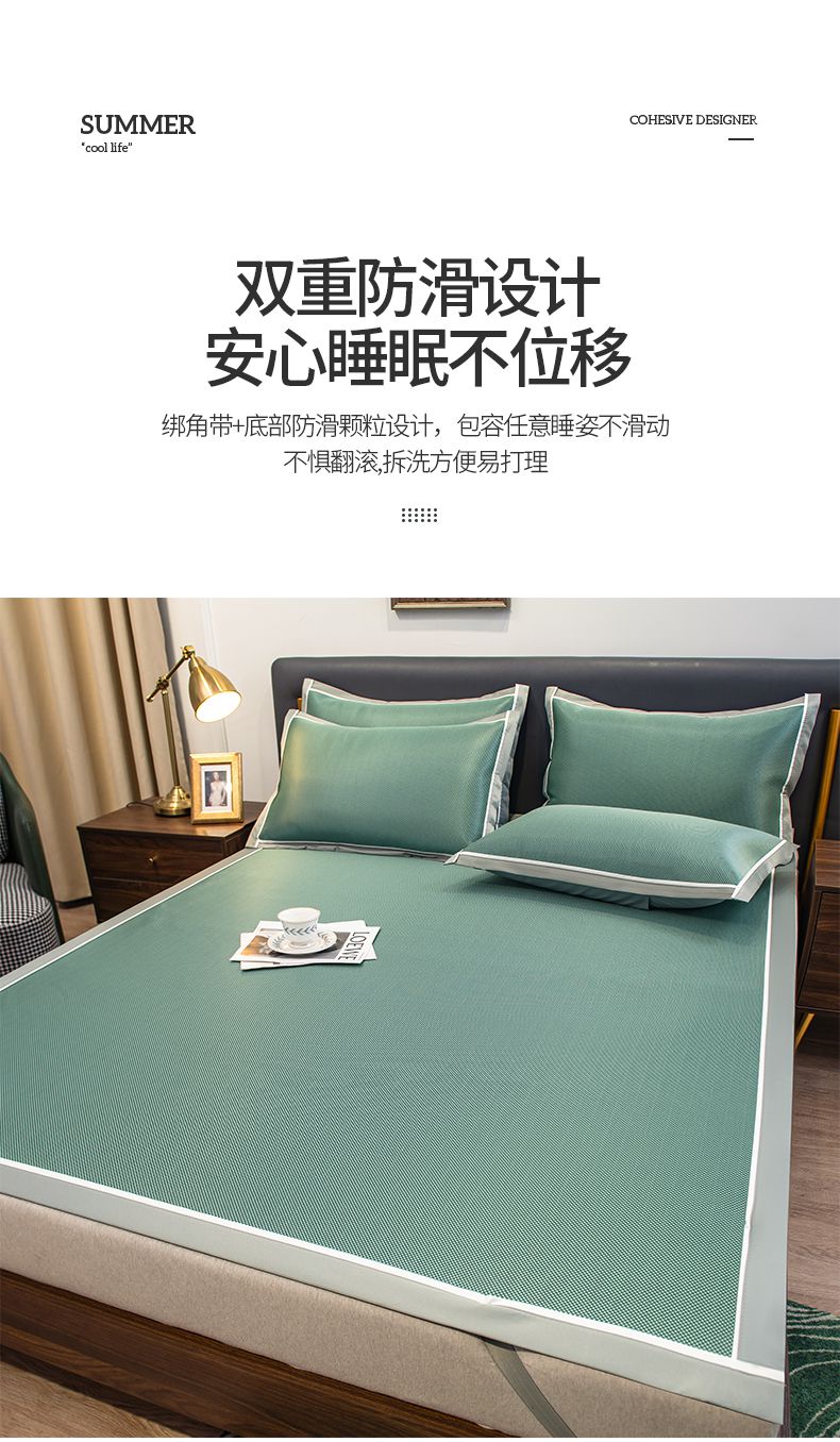 商品名称:摩妮卡 2025新款碳光席床席款三件套可洗冰丝席 裹玉绿
