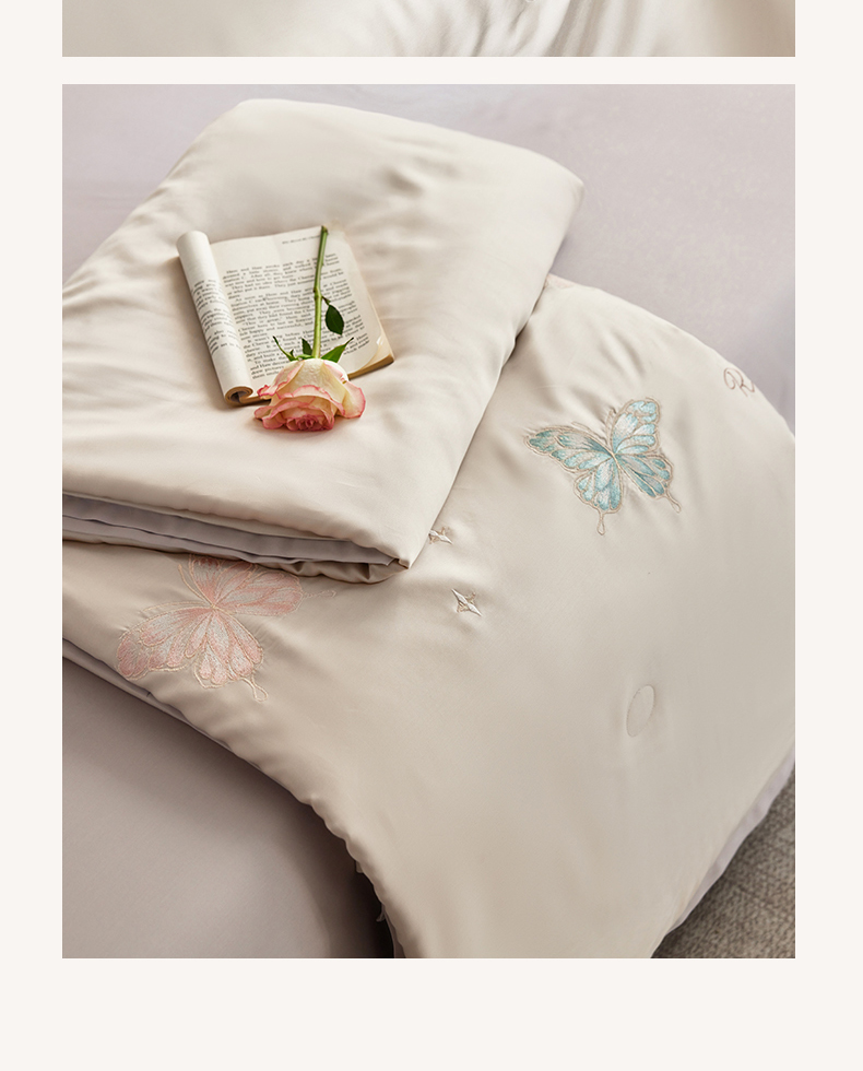 (总)纪梵茜 2025新款莱赛尔天丝夏被四件套55大豆夏凉被,蝶恋-茶色,蝶恋-粉色,蝶恋-灰色,蝶恋-米白,蝶恋-浅绿
