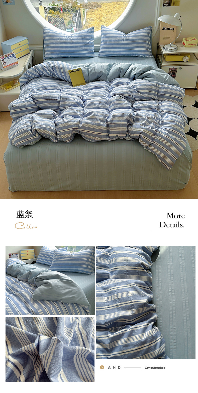 商品名称:王朝国际 2025新款皱皱棉印花四件套 蓝条