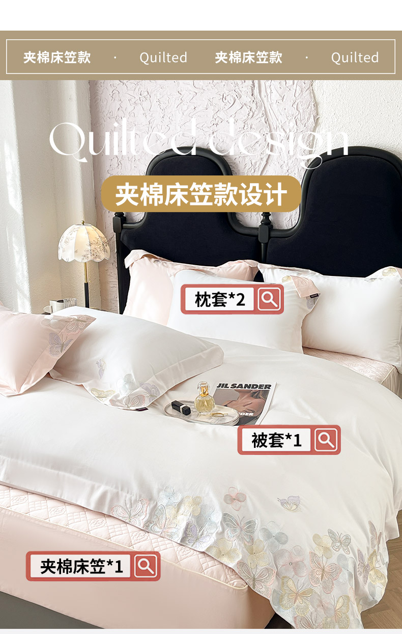 (总)2025新款轻奢风A类100支长绒棉四件套全棉纯棉重工刺绣床单床笠夹棉床笠床盖款高端床上用品-星慕,白粉,白蓝,茶绿,黛紫,慕蓝,奶玉,颜粉