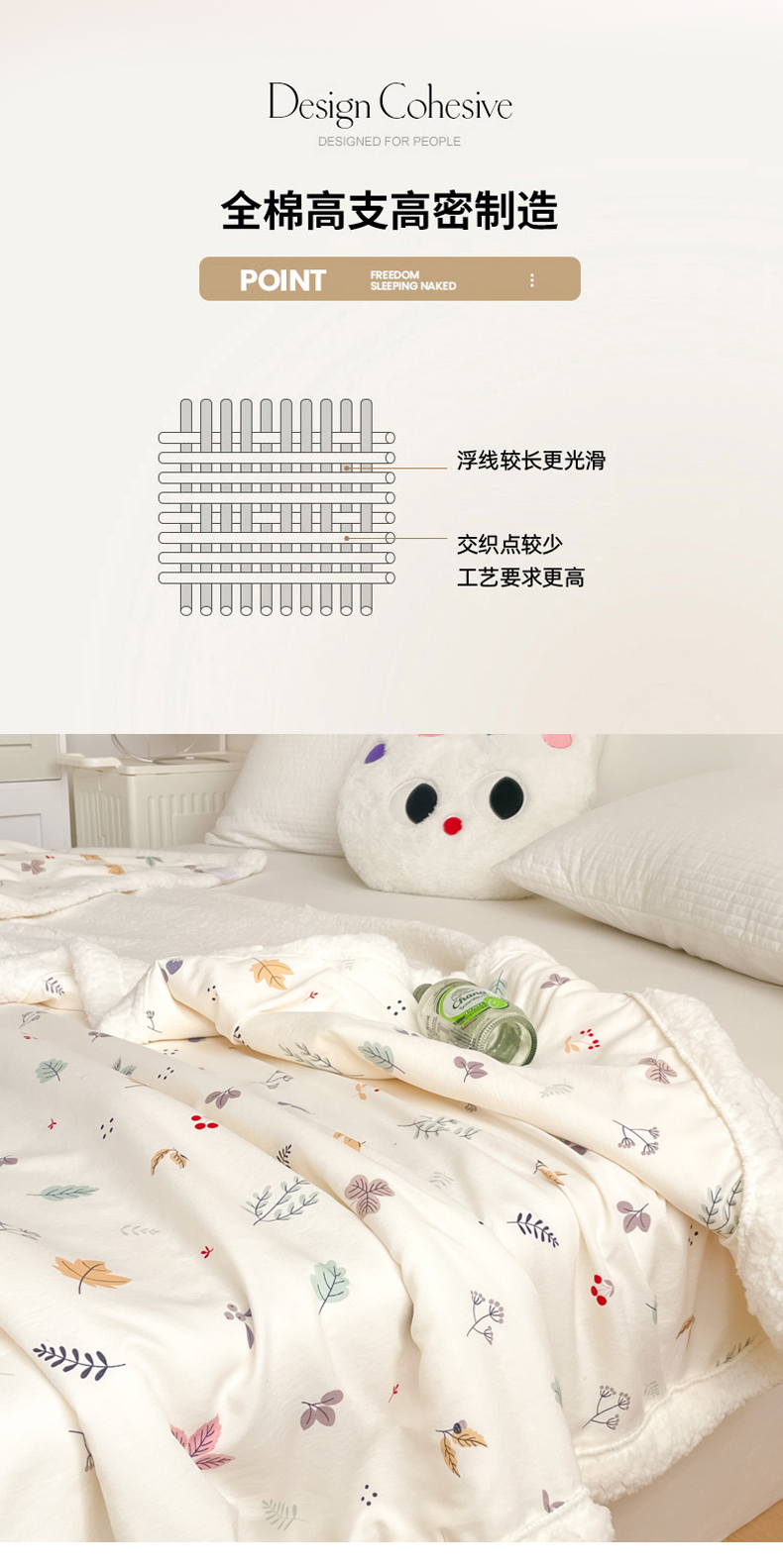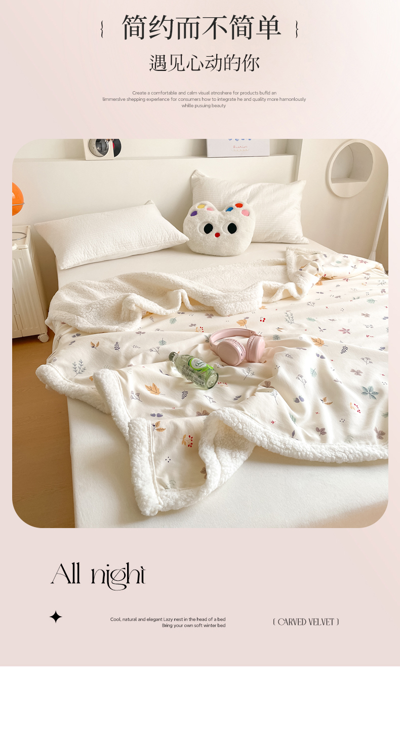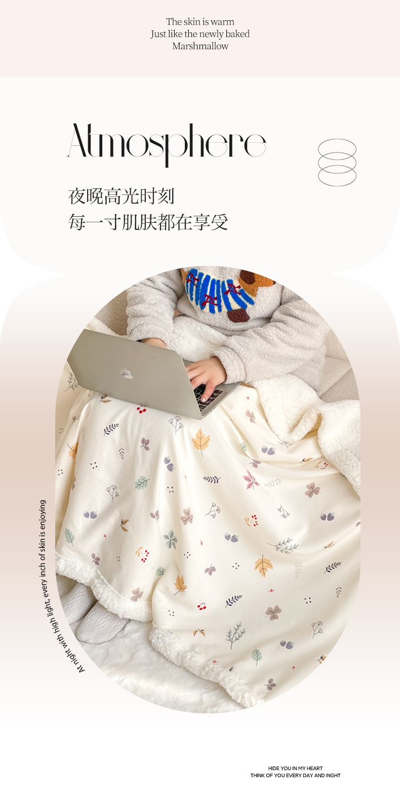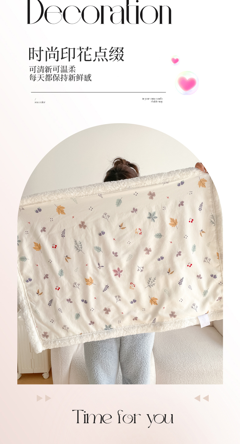 商品名称:857家居 2025新款双层针织纱羊羔绒毛毯 枫叶